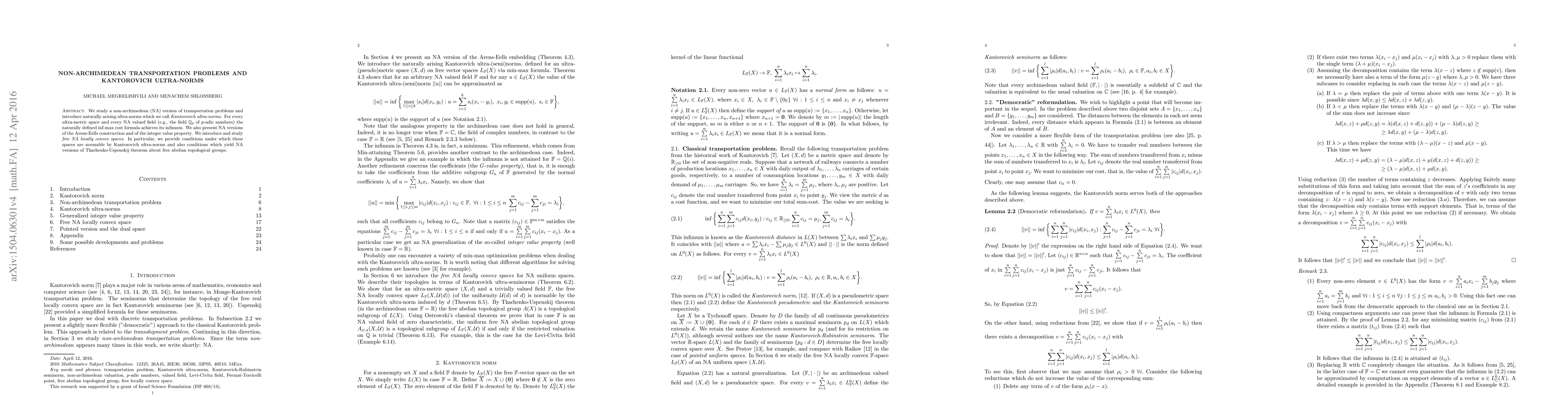 This paper explores non-archimedean versions of transportation problems and introduces Kantorovich ultra-norms for non-archimedean valued fields. It establishes conditions under which these ultra-norms achieve infima and discusses non-archimedean versions of the Arens-Eells construction and the integer value property, along with normability conditions for free non-archimedean locally convex spaces.