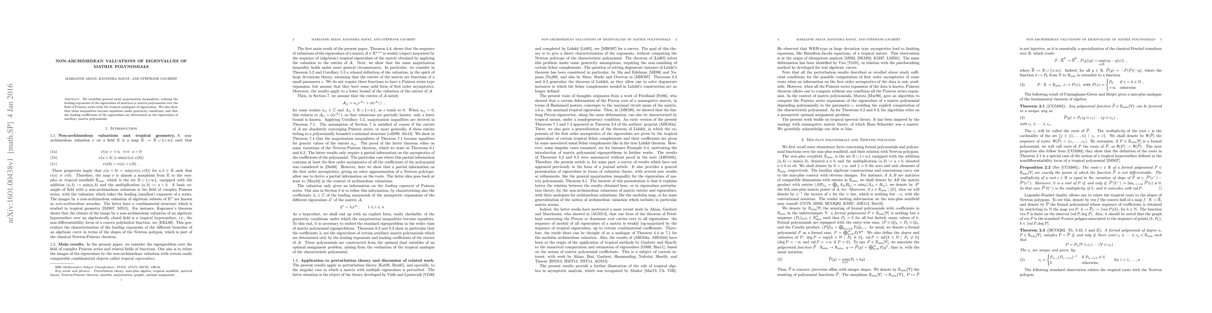 We establish general weak majorization inequalities, relating the leading exponents of the eigenvalues of matrices or matrix polynomials over the field of Puiseux series with the tropical analogues of eigenvalues. We also show that these inequalities become equalities under genericity conditions, and that the leading coefficients of the eigenvalues are determined as the eigenvalues of auxiliary matrix polynomials.
