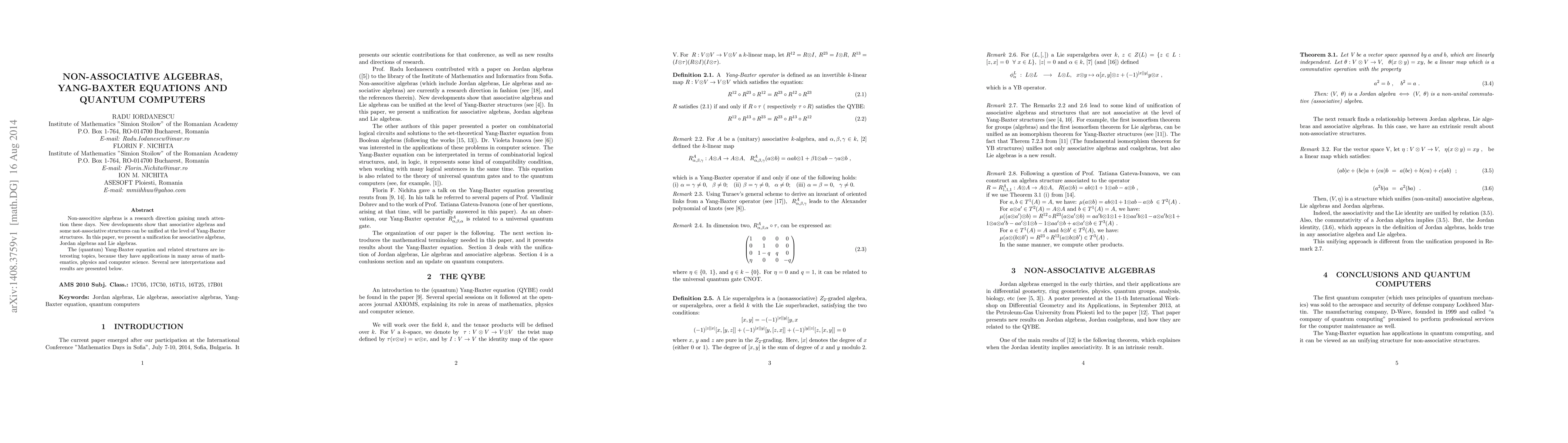 This paper unifies associative algebras, Jordan algebras, and Lie algebras through Yang-Baxter structures, revealing new interpretations and applications in mathematics, physics, and computer science, including potential implications for quantum computing.