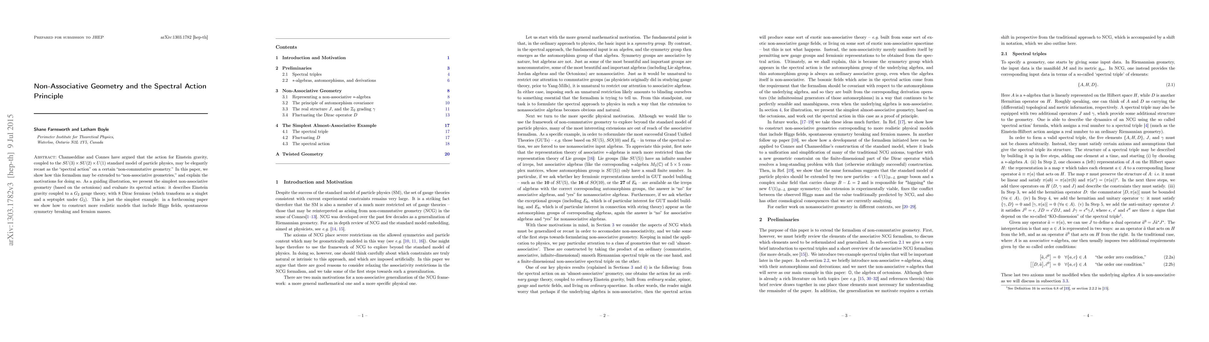 This paper extends the spectral action principle to non-associative geometries, illustrating with octonions to describe Einstein gravity coupled to a G_2 gauge theory with Dirac fermions. Future work will detail more realistic models incorporating Higgs fields and symmetry breaking.