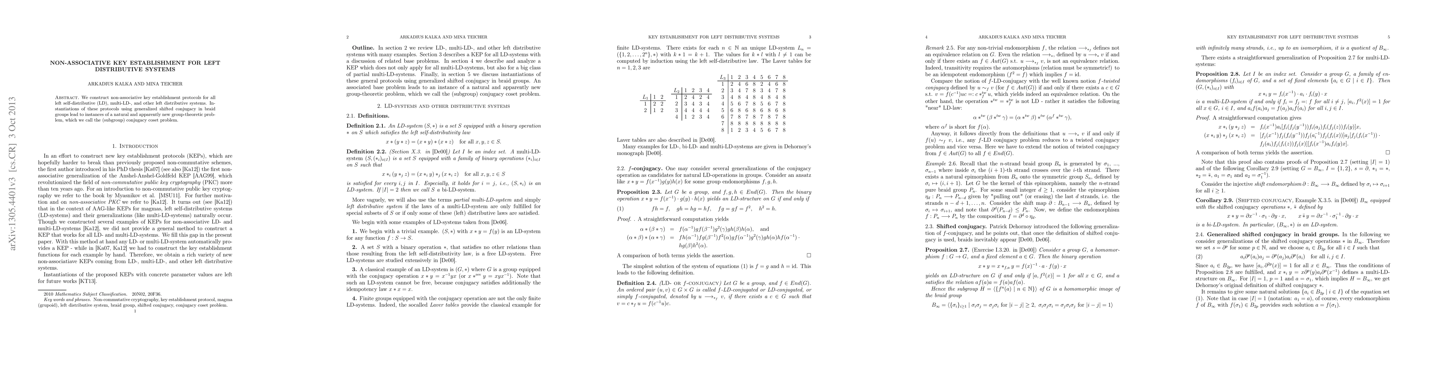 We construct non-associative key establishment protocols for all left self-distributive (LD), multi-LD-, and other left distributive systems. Instantiations of these protocols using generalized shifted conjugacy in braid groups lead to instances of a natural and apparently new group-theoretic problem, which we call the (subgroup) conjugacy coset problem.