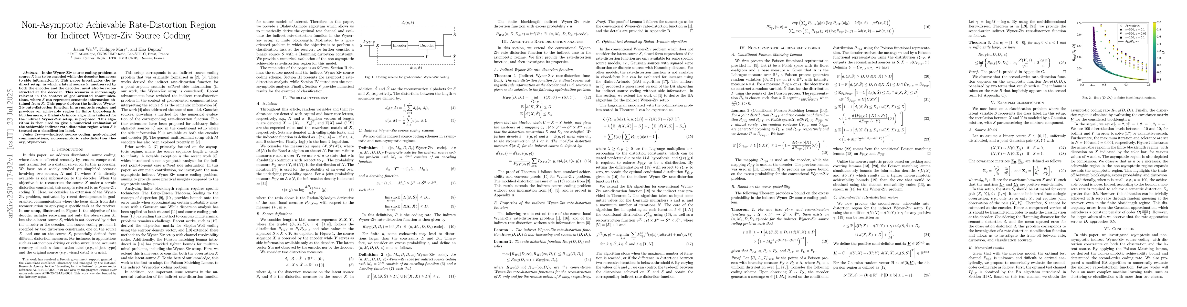 In the Wyner-Ziv source coding problem, a source $X$ has to be encoded while the decoder has access to side information $Y$. This paper investigates the indirect setup, in which a latent source $S$, unobserved by both the encoder and the decoder, must also be reconstructed at the decoder. This scenario is increasingly relevant in the context of goal-oriented communications, where $S$ can represent semantic information obtained from $X$. This paper derives the indirect Wyner-Ziv rate-distortion function in asymptotic regime and provides an achievable region in finite block-length. Furthermore, a Blahut-Arimoto algorithm tailored for the indirect Wyner-Ziv setup, is proposed. This algorithm is then used to give a numerical evaluation of the achievable indirect rate-distortion region when $S$ is treated as a classification label.