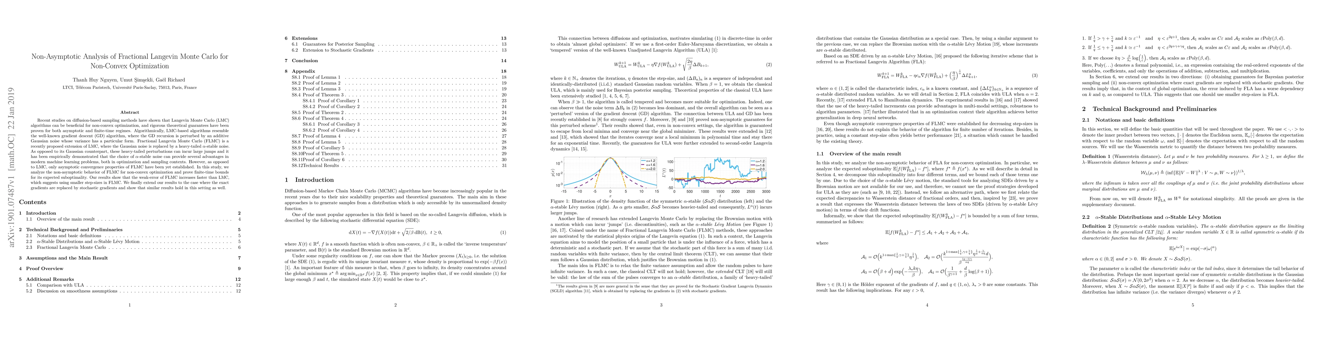 Recent studies on diffusion-based sampling methods have shown that Langevin Monte Carlo (LMC) algorithms can be beneficial for non-convex optimization, and rigorous theoretical guarantees have been proven for both asymptotic and finite-time regimes. Algorithmically, LMC-based algorithms resemble the well-known gradient descent (GD) algorithm, where the GD recursion is perturbed by an additive Gaussian noise whose variance has a particular form. Fractional Langevin Monte Carlo (FLMC) is a recently proposed extension of LMC, where the Gaussian noise is replaced by a heavy-tailed {\alpha}-stable noise. As opposed to its Gaussian counterpart, these heavy-tailed perturbations can incur large jumps and it has been empirically demonstrated that the choice of {\alpha}-stable noise can provide several advantages in modern machine learning problems, both in optimization and sampling contexts. However, as opposed to LMC, only asymptotic convergence properties of FLMC have been yet established. In this study, we analyze the non-asymptotic behavior of FLMC for non-convex optimization and prove finite-time bounds for its expected suboptimality. Our results show that the weak-error of FLMC increases faster than LMC, which suggests using smaller step-sizes in FLMC. We finally extend our results to the case where the exact gradients are replaced by stochastic gradients and show that similar results hold in this setting as well.