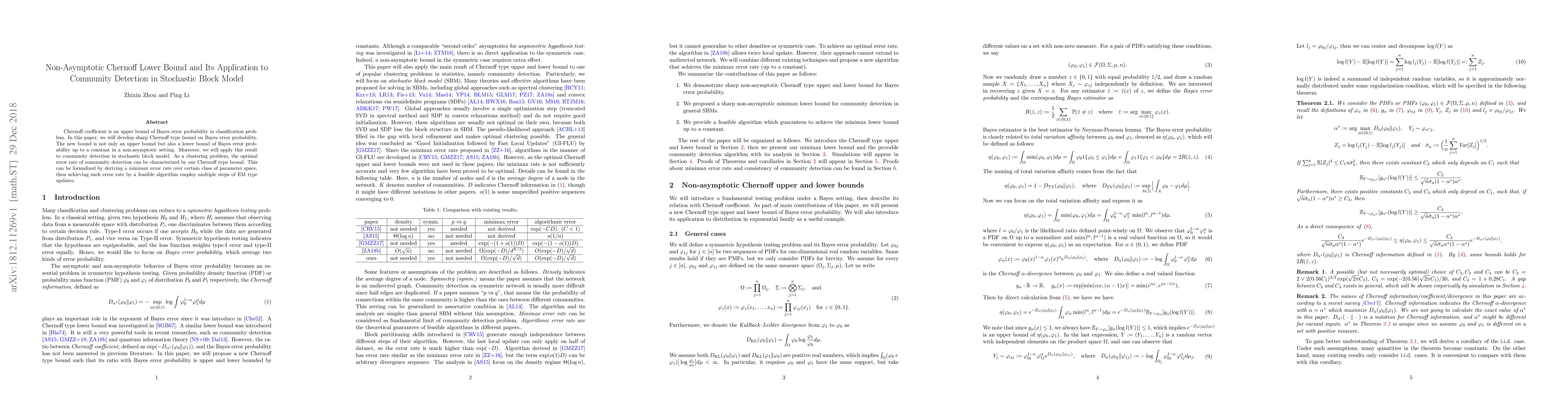 Chernoff coefficient is an upper bound of Bayes error probability in classification problem. In this paper, we will develop sharp Chernoff type bound on Bayes error probability. The new bound is not only an upper bound but also a lower bound of Bayes error probability up to a constant in a non-asymptotic setting. Moreover, we will apply this result to community detection in stochastic block model. As a clustering problem, the optimal error rate of community detection can be characterized by our Chernoff type bound. This can be formalized by deriving a minimax error rate over certain class of parameter space, then achieving such error rate by a feasible algorithm employ multiple steps of EM type updates.