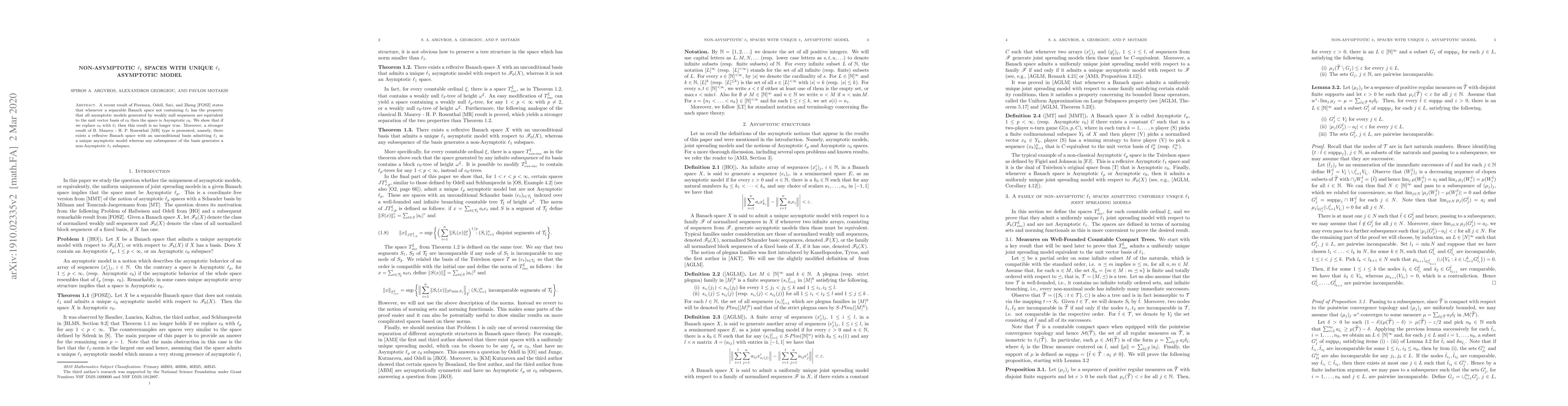 This paper demonstrates that replacing $c_0$ with $\ell_1$ in the result by Freeman et al. leads to a false conclusion. It further presents a reflexive Banach space with an unconditional basis where $\ell_1$ is the unique asymptotic model, yet any subsequence of the basis generates a non-Asymptotic $\ell_1$ subspace.