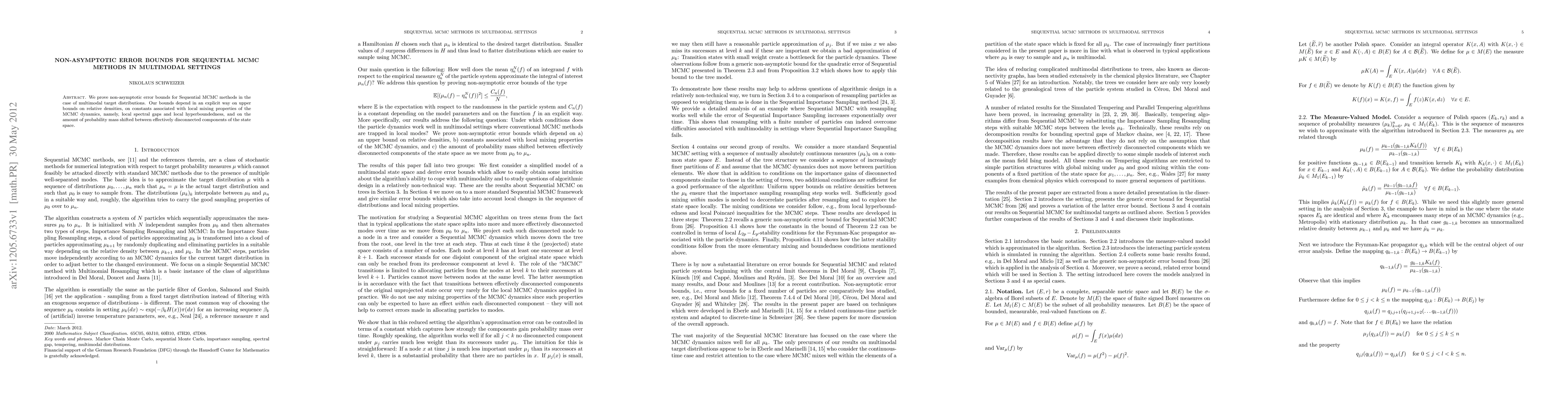 This paper establishes non-asymptotic error bounds for Sequential MCMC methods applied to multimodal distributions, with bounds explicitly depending on relative densities, local mixing properties, and shifts in probability mass between disconnected components.