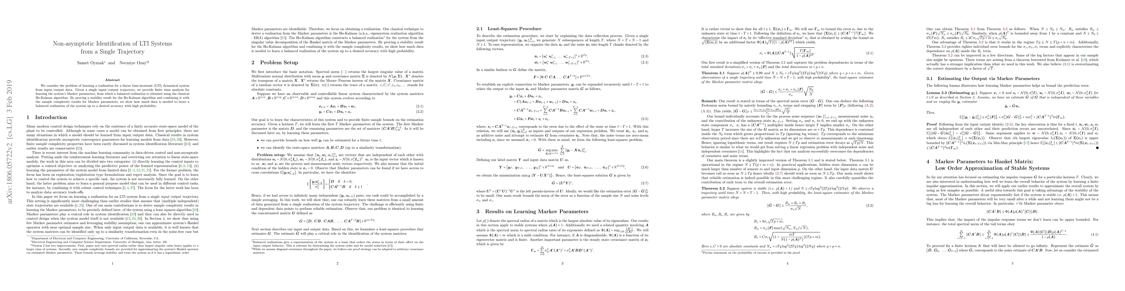 Researchers developed a method to learn a linear time-invariant system from a single input/output trajectory, requiring only a few data points for accurate identification. Their approach combines classical algorithms with sample complexity results to achieve high accuracy with high probability.