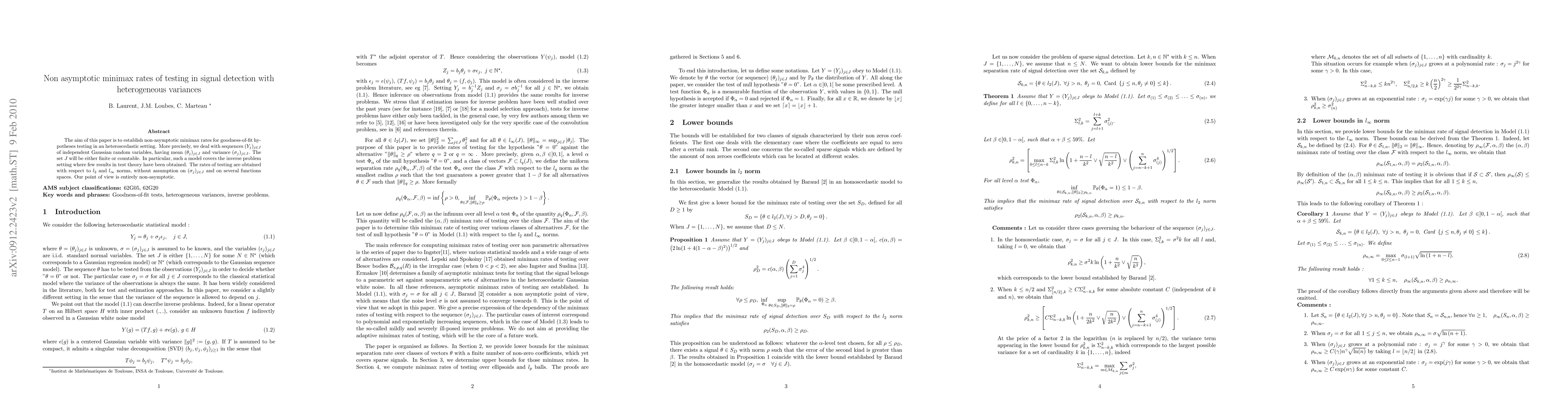 The aim of this paper is to establish non-asymptotic minimax rates of testing for goodness-of-fit hypotheses in a heteroscedastic setting. More precisely, we deal with sequences $(Y_j)_{j\in J}$ of independent Gaussian random variables, having mean $(\theta_j)_{j\in J}$ and variance $(\sigma_j)_{j\in J}$. The set $J$ will be either finite or countable. In particular, such a model covers the inverse problem setting where few results in test theory have been obtained. The rates of testing are obtained with respect to $l_2$ and $l_{\infty}$ norms, without assumption on $(\sigma_j)_{j\in J}$ and on several functions spaces. Our point of view is completely non-asymptotic.