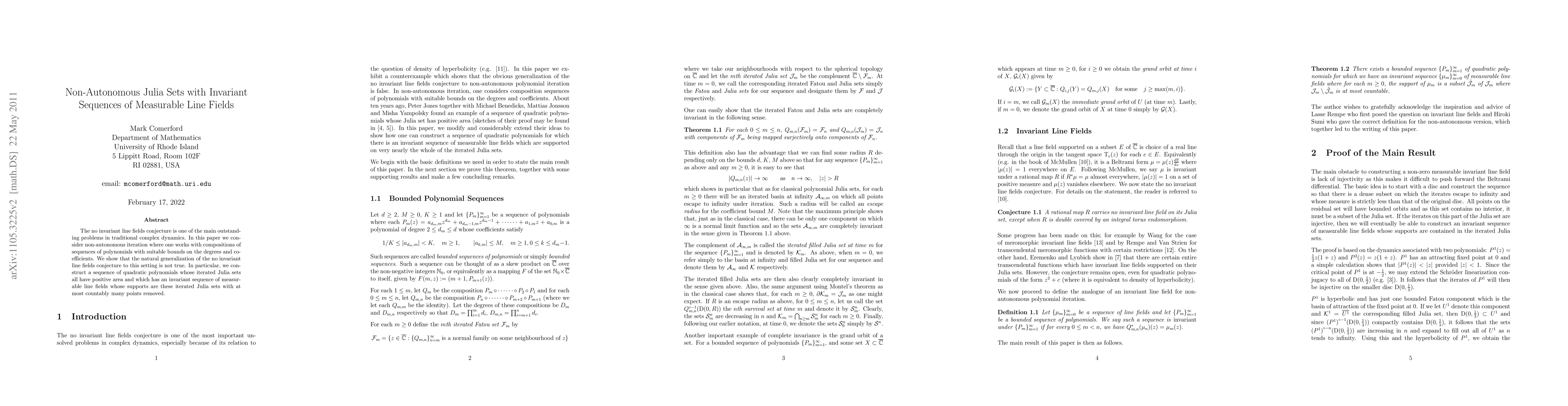 This paper disproves the generalization of the no invariant line fields conjecture in non-autonomous complex dynamics, constructing a sequence of quadratic polynomials with iterated Julia sets of positive area that possess an invariant sequence of measurable line fields.