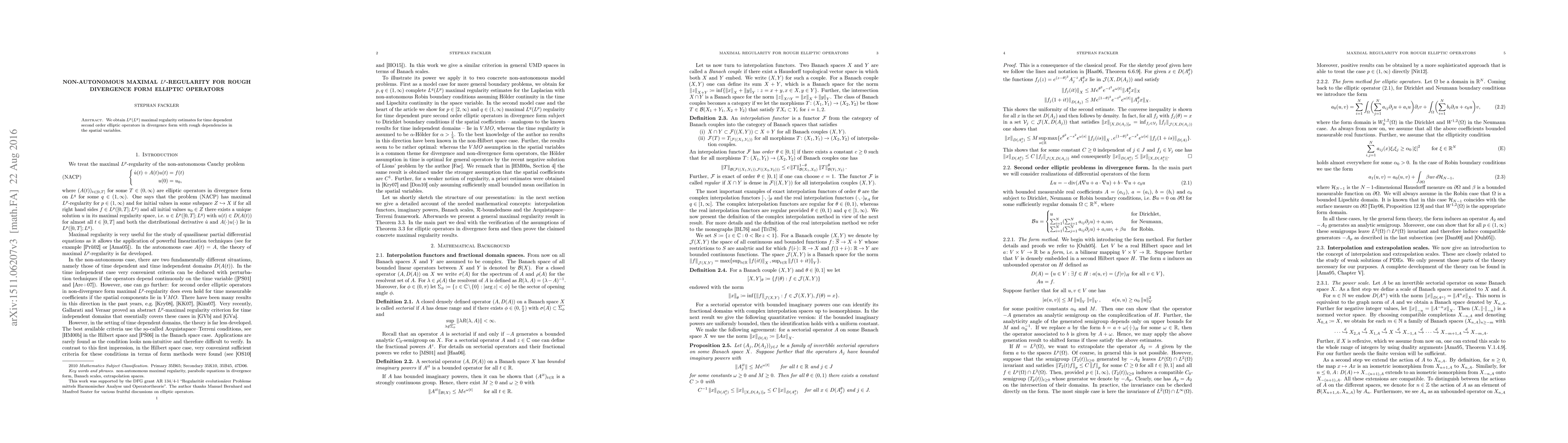 We obtain $L^p(L^q)$ maximal regularity estimates for time dependent second order elliptic operators in divergence form with rough dependencies in the spatial variables.