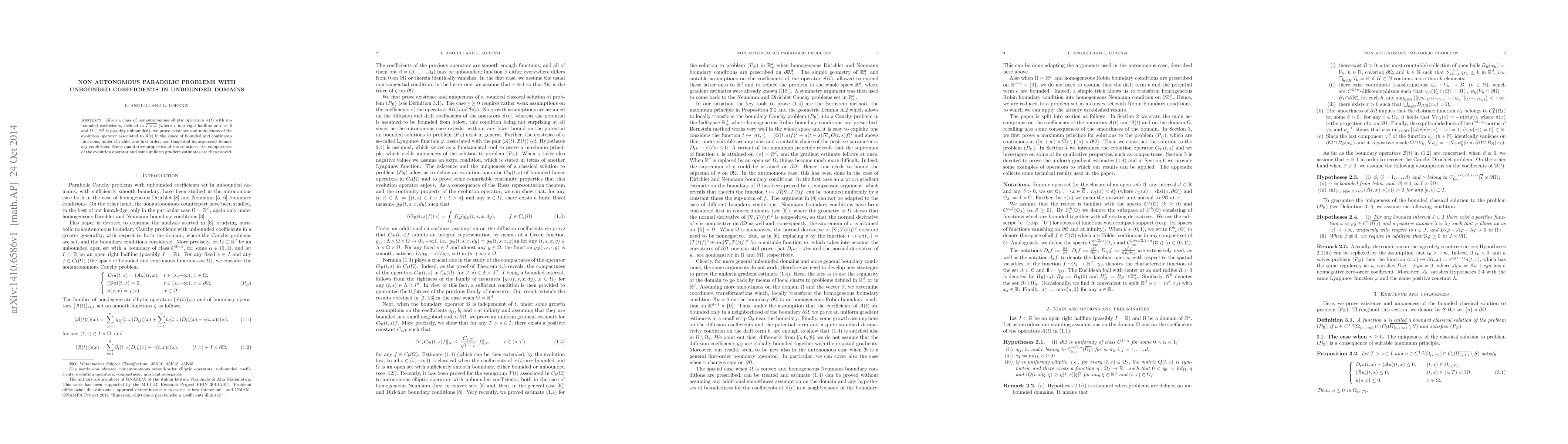 This paper proves existence and uniqueness of solutions to non-autonomous parabolic problems with unbounded coefficients in unbounded domains, focusing on evolution operators and qualitative properties under various boundary conditions.