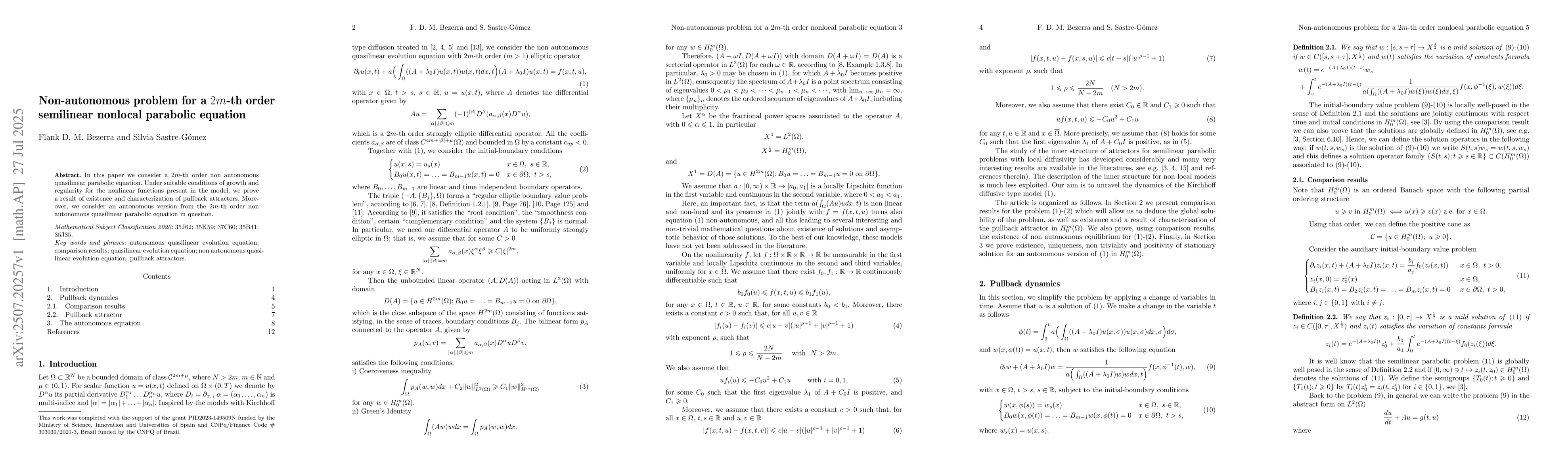 In this paper we consider a $2m$-th order non autonomous quasilinear parabolic equation. Under suitable conditions of growth and regularity for the nonlinear functions present in the model, we prove a result of existence and characterization of pullback attractors. Moreover, we consider an autonomous version from the $2m$-th order non autonomous quasilinear parabolic equation in question.
