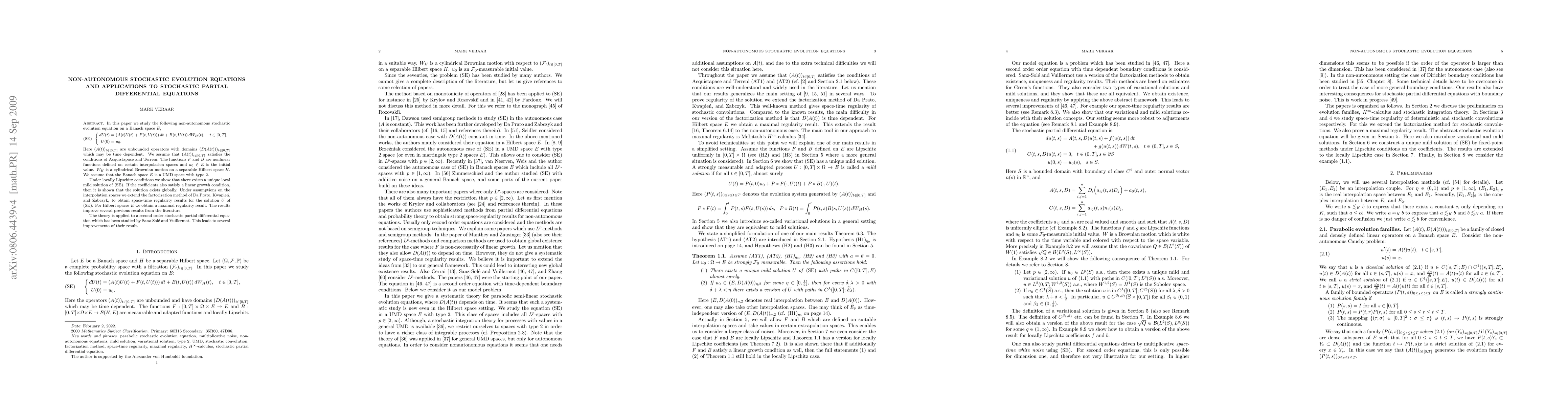 This paper studies a non-autonomous stochastic evolution equation on Banach spaces, showing existence and uniqueness of mild solutions under certain conditions, and applying the results to improve previous findings on second-order stochastic partial differential equations.