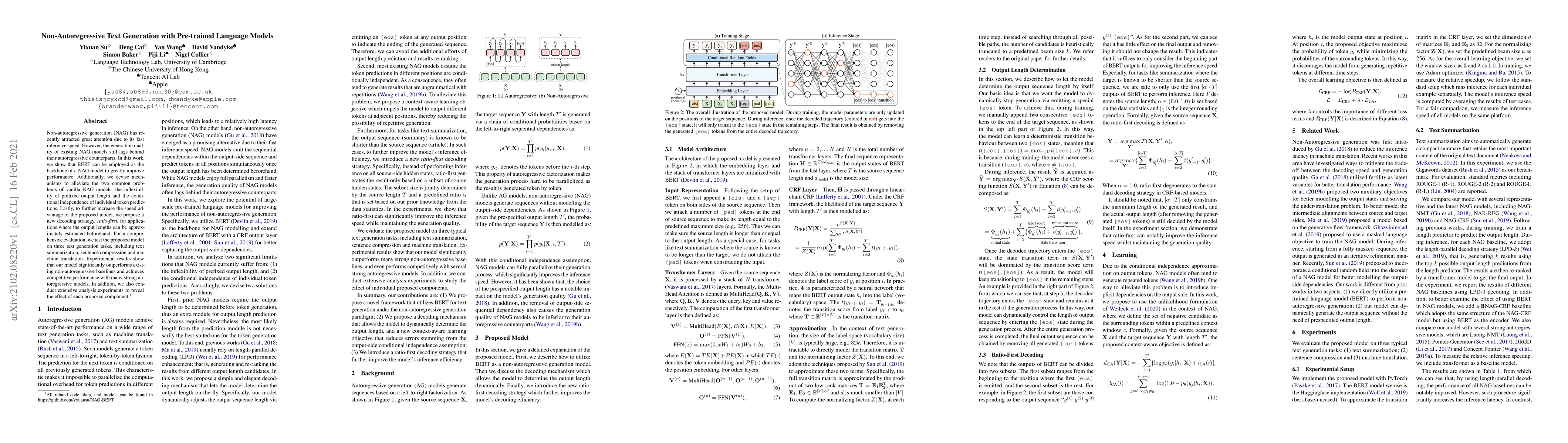 This paper proposes a non-autoregressive text generation model using BERT to enhance performance, addressing issues of output length inflexibility and conditional independence. The model also introduces a ratio-first decoding strategy for faster inference, achieving competitive results against autoregressive models across text summarization, sentence compression, and machine translation tasks.