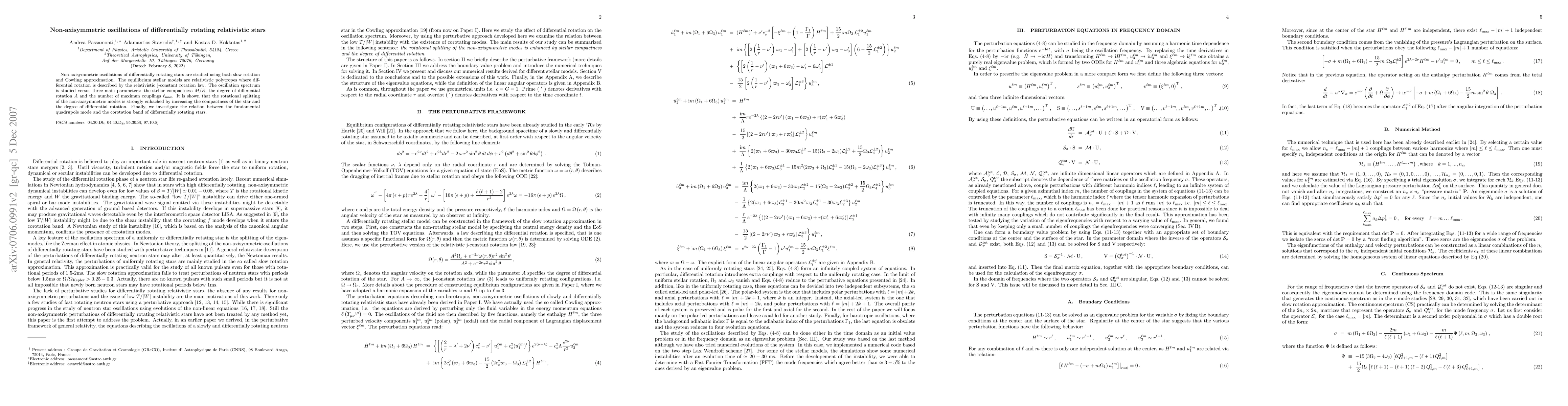 Non-axisymmetric oscillations of differentially rotating stars are studied using both slow rotation and Cowling approximation. The equilibrium stellar models are relativistic polytropes where differential rotation is described by the relativistic j-constant rotation law. The oscillation spectrum is studied versus three main parameters: the stellar compactness $M/R$, the degree of differential rotation $A$ and the number of maximun couplings $\ell_{\rm max}$. It is shown that the rotational splitting of the non-axisymmetric modes is strongly enhached by increasing the compactness of the star and the degree of differential rotation. Finally, we investigate the relation between the fundamental quadrupole mode and the corotation band of differentially rotating stars.