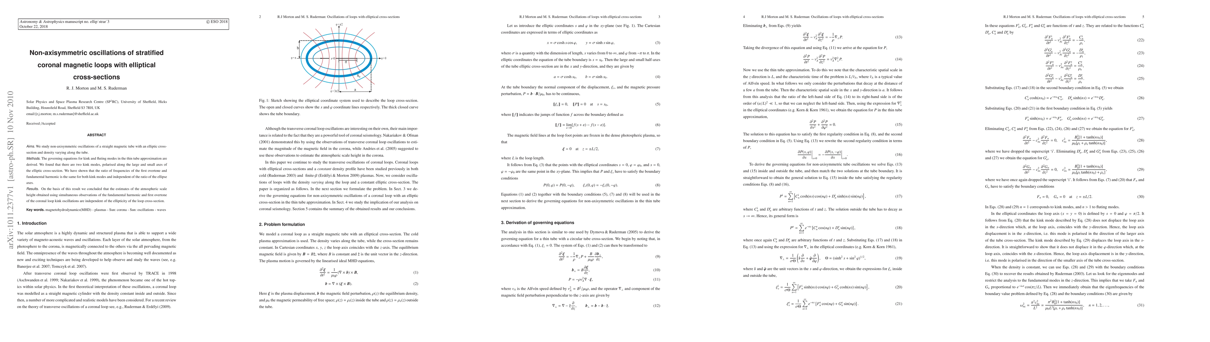 Researchers studied non-axisymmetric oscillations in elliptical coronal magnetic loops, finding that kink modes have the same frequency ratio regardless of ellipse axis sizes, with implications for estimating atmospheric scale height.