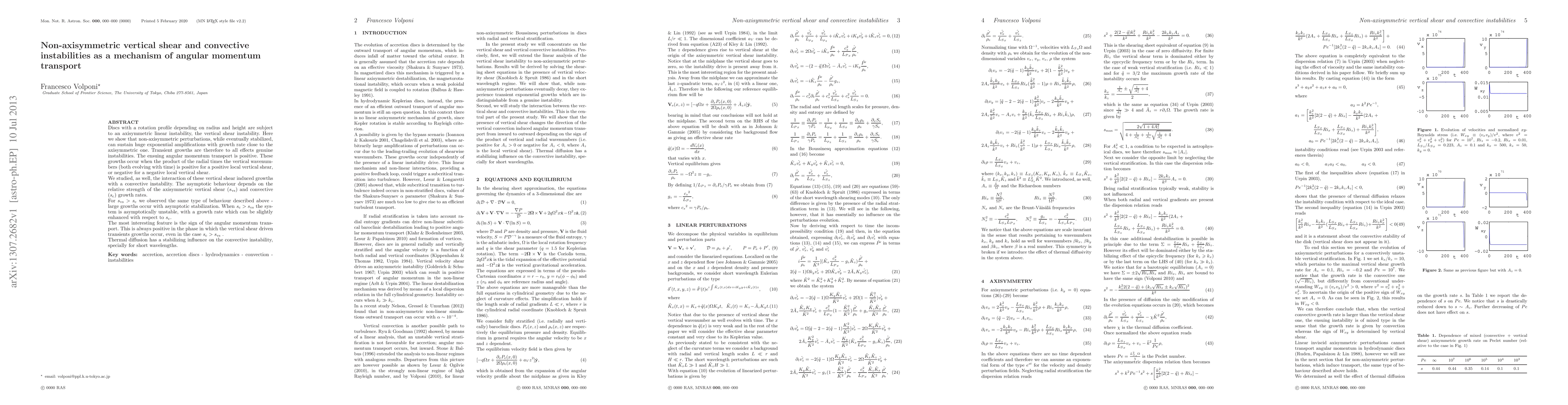 This paper investigates how non-axisymmetric perturbations in rotating discs lead to transient growths and angular momentum transport, showing that these growths are genuine instabilities. It also examines the interaction between vertical shear and convective instabilities, finding that angular momentum transport remains positive despite the dominance of convective instability.