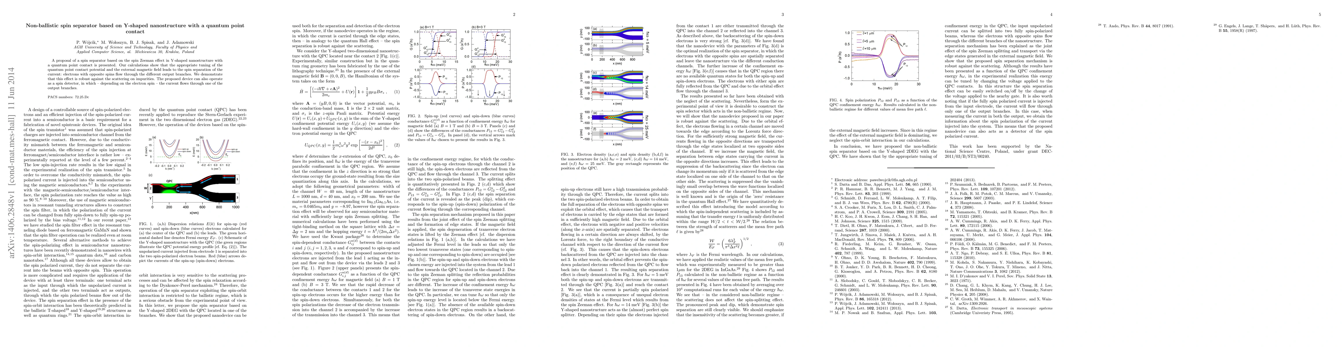 This paper proposes a non-ballistic spin separator utilizing a Y-shaped nanostructure with a quantum point contact, achieving spin separation via the spin Zeeman effect. The device effectively separates electrons with opposite spins into different output branches, demonstrating robustness against impurity scattering and potential use as a spin detector.