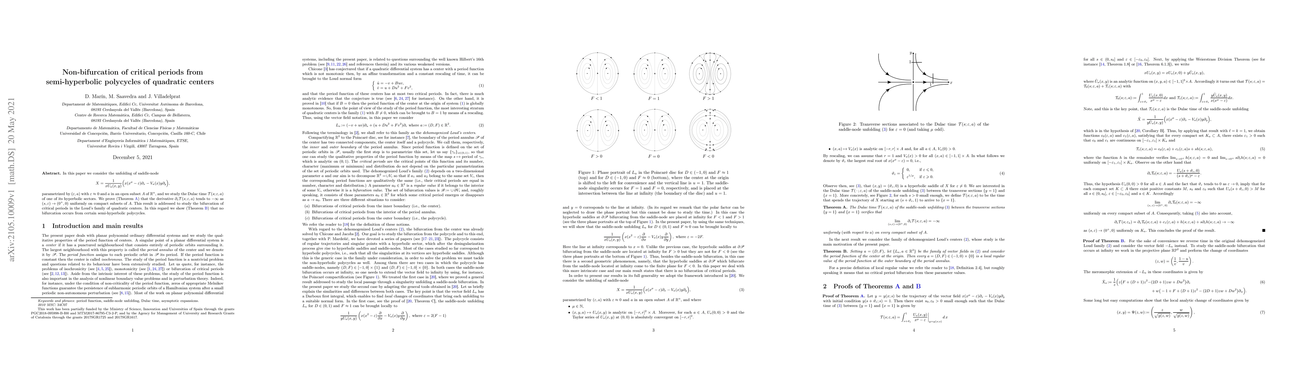 In this paper we consider the unfolding of saddle-node \[ X= \frac{1}{xU_a(x,y)}\Big(x(x^\mu-\varepsilon)\partial_x-V_a(x)y\partial_y\Big), \] parametrized by $(\varepsilon,a)$ with $\varepsilon\approx 0$ and $a$ in an open subset $A$ of $\mathbb R^{\alpha},$ and we study the Dulac time $\mathcal T(s;\varepsilon,a)$ of one of its hyperbolic sectors. We prove (Theorem A) that the derivative $\partial_s\mathcal T(s;\varepsilon,a)$ tends to $-\infty$ as $(s,\varepsilon)\to (0^+,0)$ uniformly on compact subsets of $A.$ This result is addressed to study the bifurcation of critical periods in the Loud's family of quadratic centers. In this regard we show (Theorem B) that no bifurcation occurs from certain semi-hyperbolic polycycles.