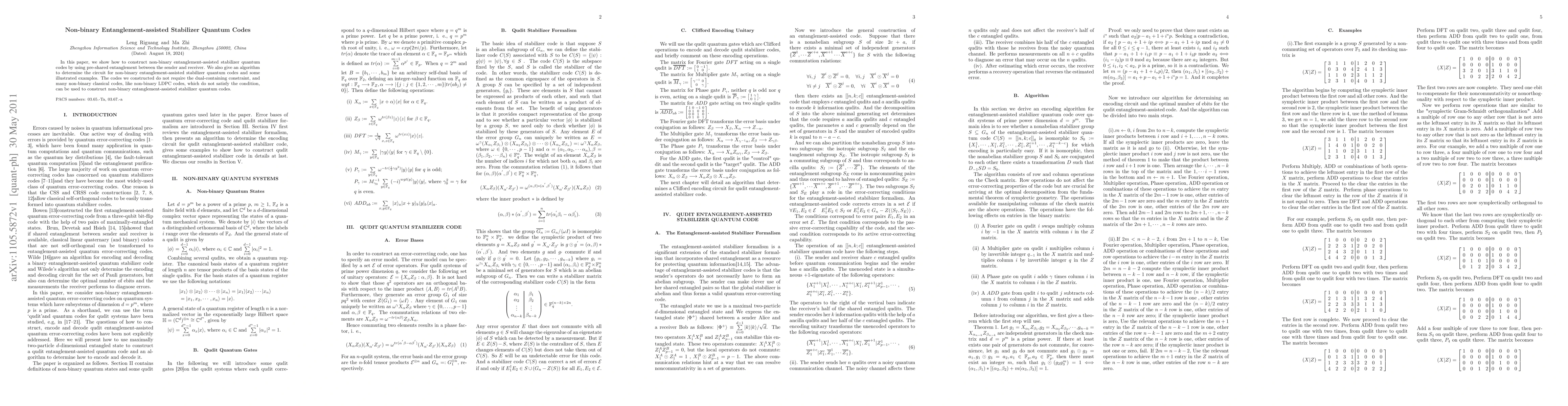 This paper presents a method for constructing non-binary entanglement-assisted stabilizer quantum codes without the dual-containing constraint, utilizing pre-shared entanglement. It provides an algorithm for circuit determination and demonstrates its application using examples from non-binary classical codes like non-binary LDPC codes.