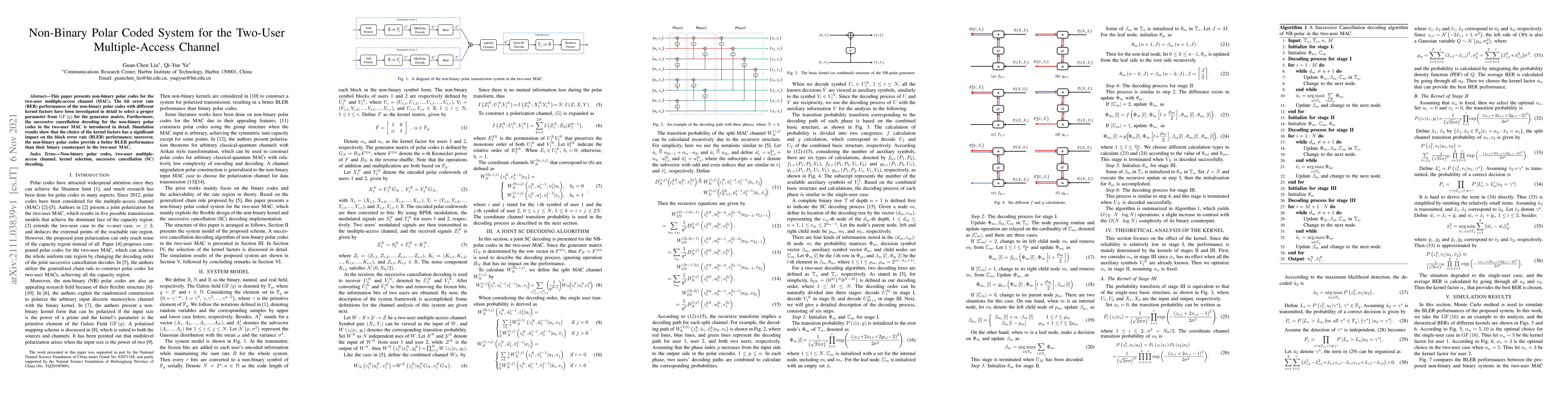 This paper presents non-binary polar codes for the two-user multiple-access channel (MAC). The bit error rate (BER) performances of the non-binary polar codes with different kernel factors have been investigated in detail to select a proper parameter from GF(q) for the generator matrix. Furthermore, the successive cancellation decoding for the non-binary polar codes in the two-user MAC is introduced in detail. Simulation results show that the choice of the kernel factors has a significant impact on the block error rate (BLER) performance; moreover, the non-binary polar codes provide a better BLER performance than their binary counterpart in the two-user MAC.