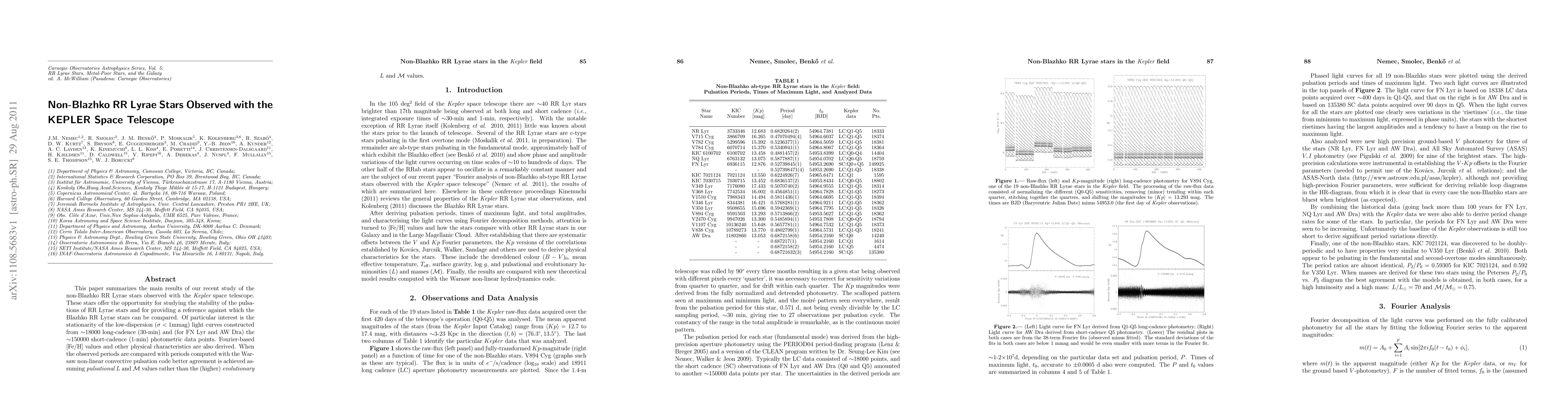 This paper summarizes the main results of our recent study of the non-Blazhko RR Lyrae stars observed with the Kepler space telescope. These stars offer the opportunity for studying the stability of the pulsations of RR Lyrae stars and for providing a reference against which the Blazhko RR Lyrae stars can be compared. Of particular interest is the stability of the low-dispersion (sigma < 1mmag) light curves constructed from ~18,000 long-cadence (30-min) and (for FN Lyr and AW Dra) the ~150,000 short-cadence (1-min) photometric data points. Fourier-based [Fe/H] values and other physical characteristics are also derived. When the observed periods are compared with periods computed with the Warsaw non-linear convective pulsation code better agreement is achieved assuming pulsational L and M values rather than the (higher) evolutionary L and M values.