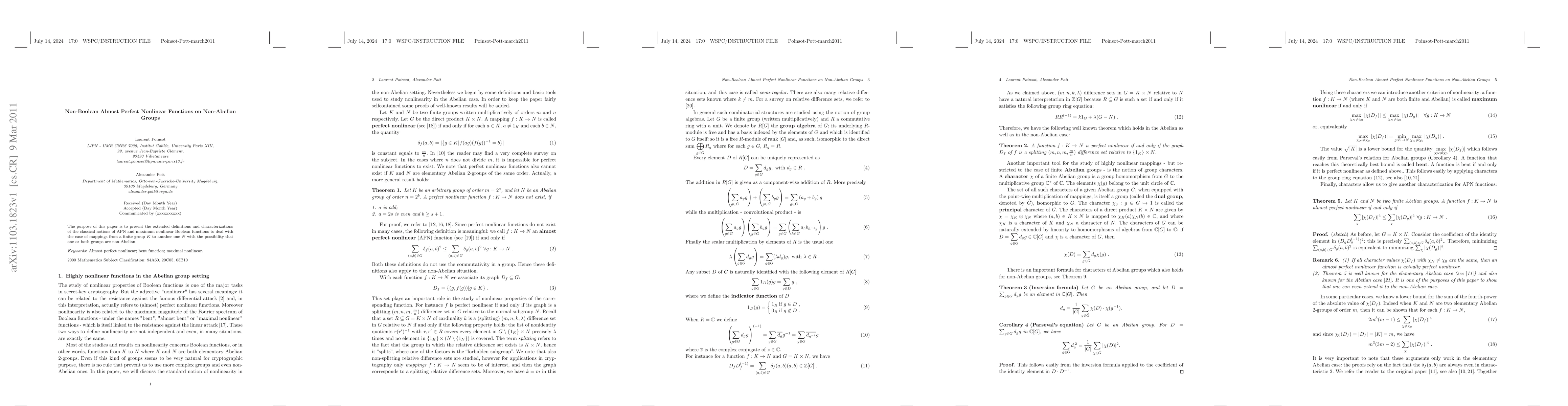 The purpose of this paper is to present the extended definitions and characterizations of the classical notions of APN and maximum nonlinear Boolean functions to deal with the case of mappings from a finite group K to another one N with the possibility that one or both groups are non-Abelian.