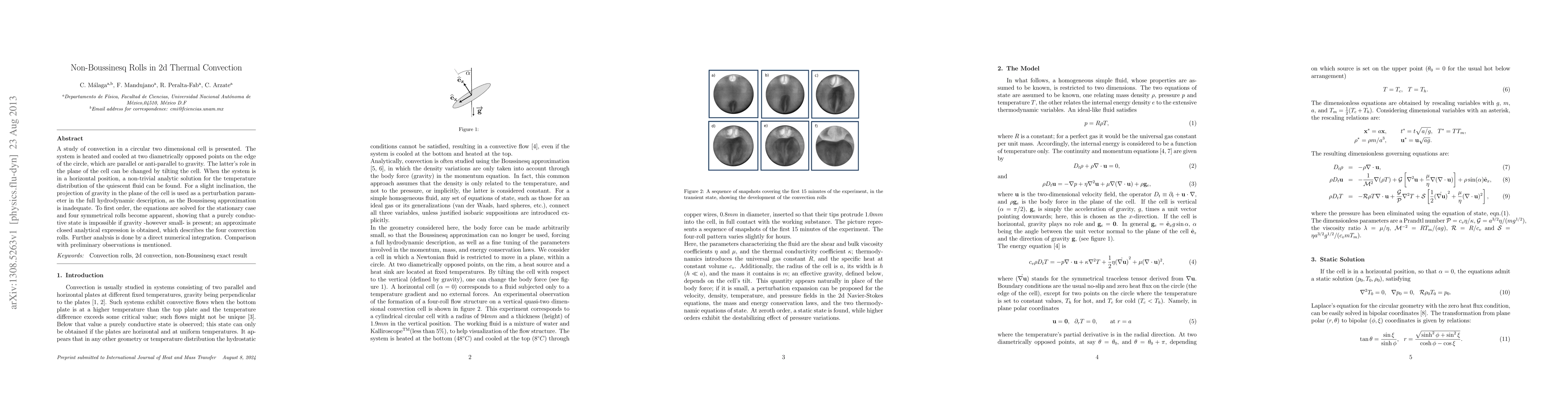 Researchers studied 2D thermal convection in a circular cell with heating and cooling points, finding four symmetrical rolls that cannot be explained by purely conductive states due to the presence of gravity.