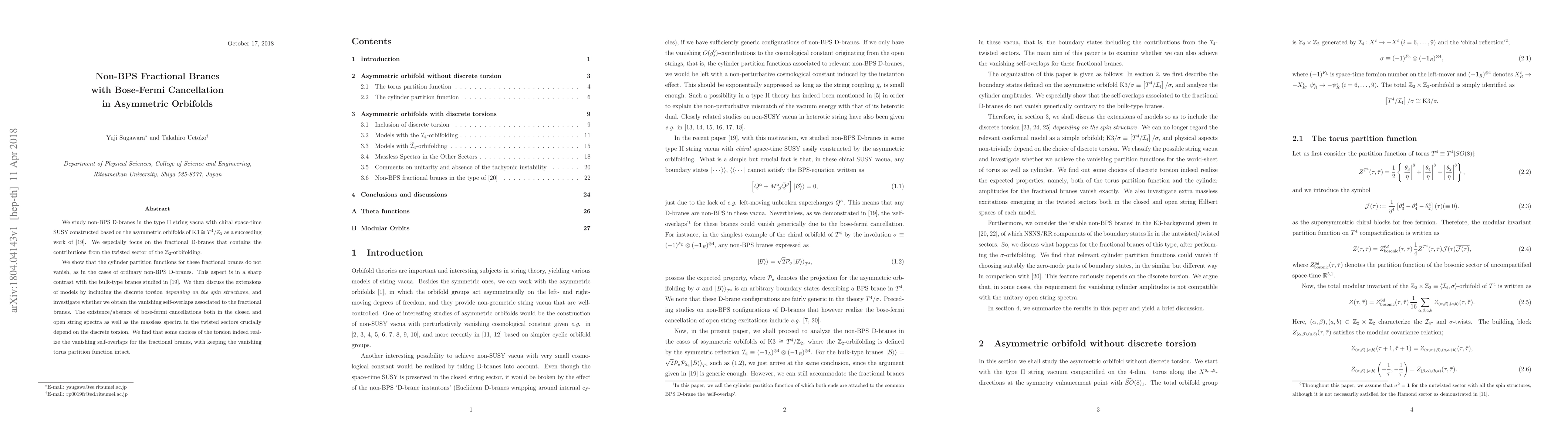 This paper explores non-BPS fractional D-branes in type II string vacua based on asymmetric orbifolds of K3 surfaces, demonstrating that their cylinder partition functions do not vanish unlike ordinary non-BPS branes. It investigates the conditions under discrete torsion that achieve bose-fermi cancellations and vanishing self-overlaps for these fractional branes.