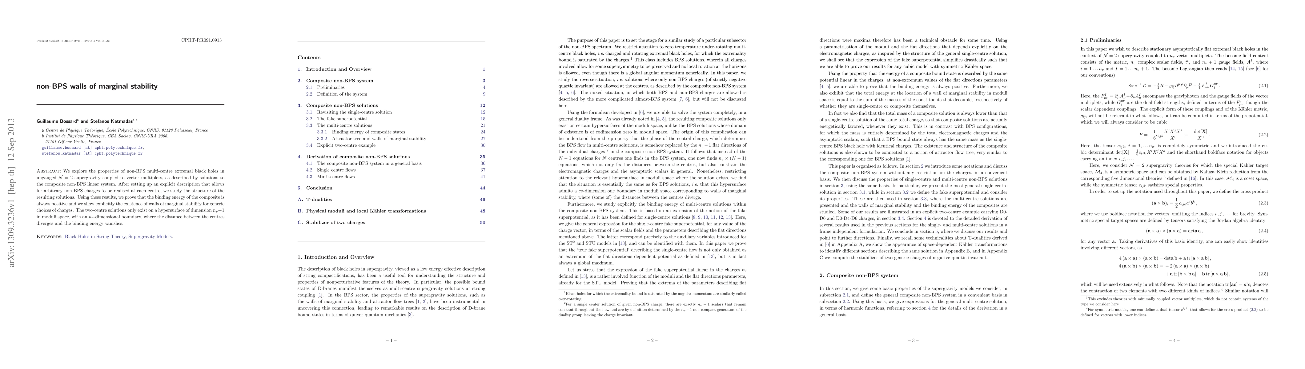 This paper explores the properties of non-BPS black holes in N=2 supergravity, showing that walls of marginal stability exist for generic charges and proving positive binding energy for composite solutions.