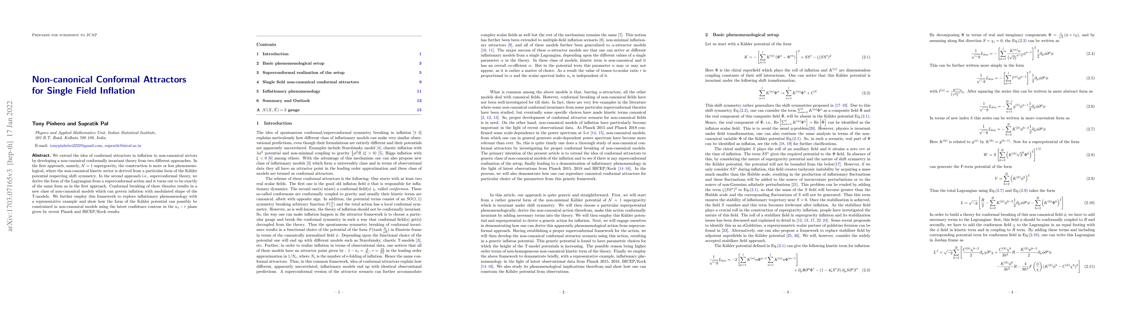 This research introduces non-canonical conformal attractors in single-field inflation, constructing a non-canonical conformally invariant theory via two approaches: ${cal N}=1$ supergravity and superconformal theory. Both yield the same Lagrangian form, leading to new inflationary models with T-model modulation. The authors demonstrate this framework using an example and discuss constraining Kähler potential forms with recent $n_s-r$ plane data.