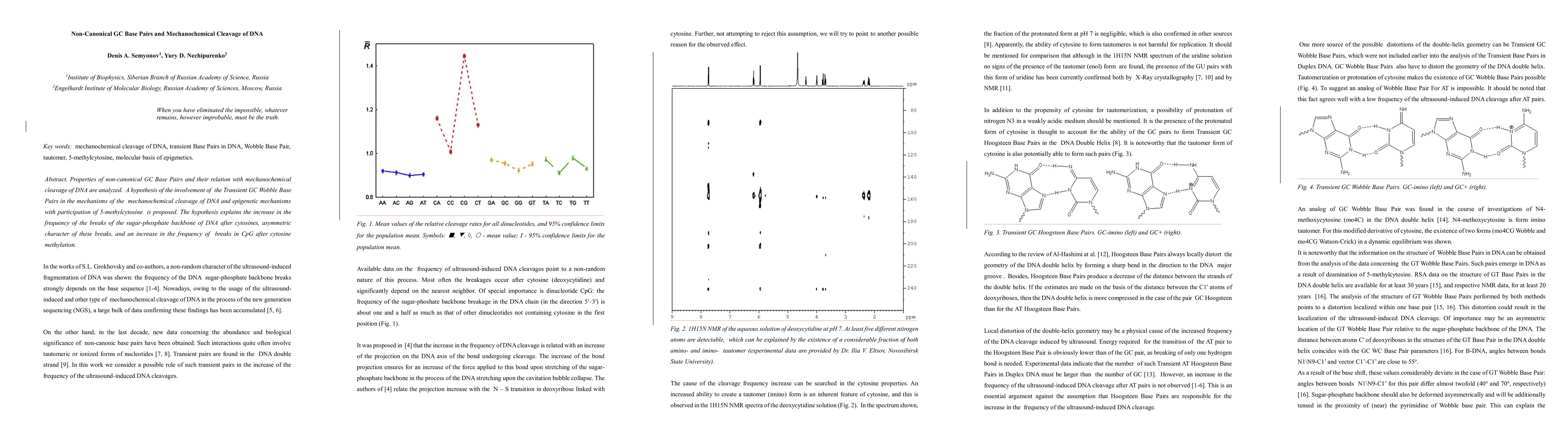 Properties of non-canonical GC Base Pairs and their relation with mechanochemical cleavage of DNA are analyzed. A hypothesis of the involvement of the Transient GC Wobble Base Pairs in the mechanisms of the mechanochemical cleavage of DNA and epigenetic mechanisms with participation of 5-methylcytosine is proposed. The hypothesis explains the increase in the frequency of the breaks of the sugar-phosphate backbone of DNA after cytosines, asymmetric character of these breaks, and an increase in the frequency of breaks in CpG after cytosine methylation.