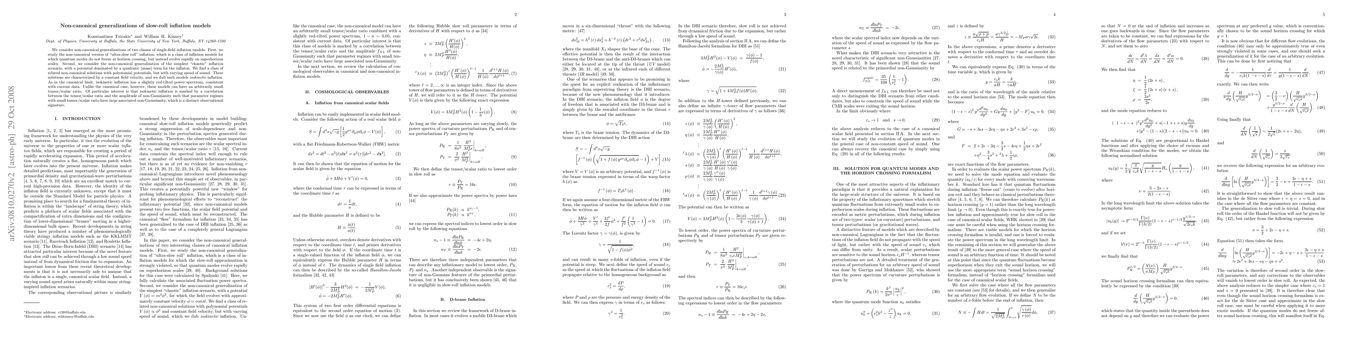 We consider non-canonical generalizations of two classes of simple single-field inflation models. First, we study the non-canonical version of "ultra-slow roll" inflation, which is a class of inflation models for which quantum modes do not freeze at horizon crossing, but instead evolve rapidly on superhorizon scales. Second, we consider the non-canonical generalization of the simplest "chaotic" inflation scenario, with a potential dominated by a quartic (mass) term for the inflaton. We find a class of related non-canonical solutions with polynomial potentials, but with varying speed of sound. These solutions are characterized by a constant field velocity, and we dub such models {\it isokinetic} inflation. As in the canonical limit, isokinetic inflation has a slightly red-tilted power spectrum, consistent with current data. Unlike the canonical case, however, these models can have an arbitrarily small tensor/scalar ratio. Of particular interest is that isokinetic inflation is marked by a correlation between the tensor/scalar ratio and the amplitude of non-Gaussianity such that parameter regimes with small tensor/scalar ratio have {\it large} associated non-Gaussianity, which is a distinct observational signature.