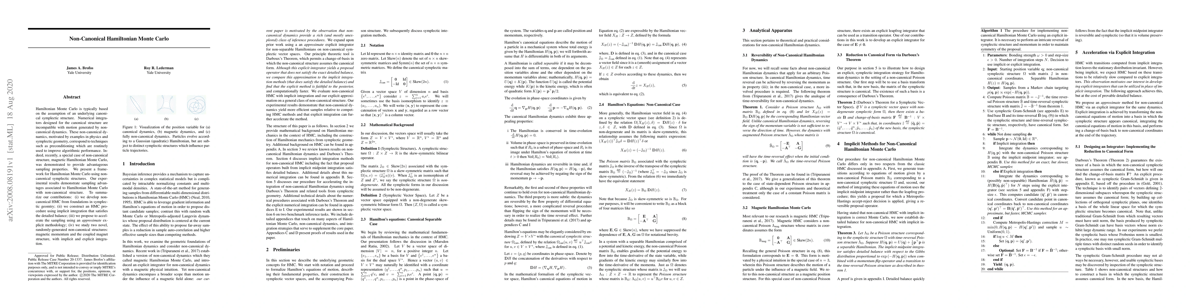 Hamiltonian Monte Carlo is typically based on the assumption of an underlying canonical symplectic structure. Numerical integrators designed for the canonical structure are incompatible with motion generated by non-canonical dynamics. These non-canonical dynamics, motivated by examples in physics and symplectic geometry, correspond to techniques such as preconditioning which are routinely used to improve algorithmic performance. Indeed, recently, a special case of non-canonical structure, magnetic Hamiltonian Monte Carlo, was demonstrated to provide advantageous sampling properties. We present a framework for Hamiltonian Monte Carlo using non-canonical symplectic structures. Our experimental results demonstrate sampling advantages associated to Hamiltonian Monte Carlo with non-canonical structure. To summarize our contributions: (i) we develop non-canonical HMC from foundations in symplectic geomtry; (ii) we construct an HMC procedure using implicit integration that satisfies the detailed balance; (iii) we propose to accelerate the sampling using an {\em approximate} explicit methodology; (iv) we study two novel, randomly-generated non-canonical structures: magnetic momentum and the coupled magnet structure, with implicit and explicit integration.