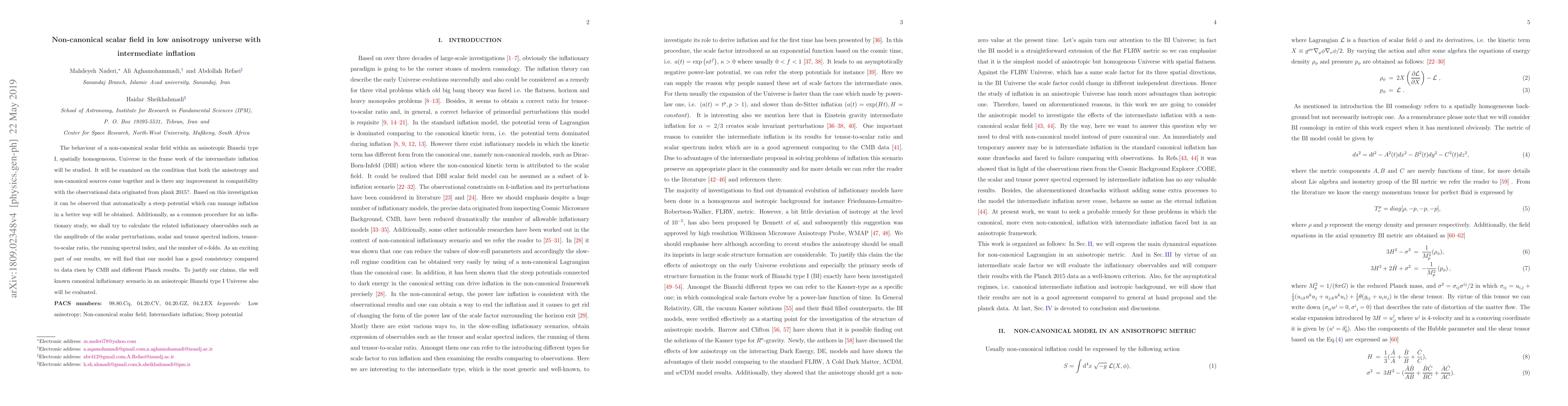 The behaviour of a non-canonical scalar field within an anisotropic Bianchi type I, spatially homogeneous, Universe in the framework of the intermediate inflation will be studied. It will be examined on the condition that both the anisotropy and non-canonical sources come together and is there any improvement in compatibility with the observational data originated from plank $2015$?. Based on this investigation it can be observed that automatically a steep potential which can manage inflation in a better way will be obtained. Additionally, as a common procedure for an inflationary study, we shall try to calculate the related inflationary observables such as the amplitude of the scalar perturbations, scalar and tensor spectral indices, tensor-to-scalar ratio, the running spectral index, and the number of e-folds. As an exciting part of our results, we will find that our model has a good consistency compared to data risen by CMB and different Planck results. To justify our claims, the well known canonical inflationary scenario in an anisotropic Bianchi type I Universe also will be evaluated.
