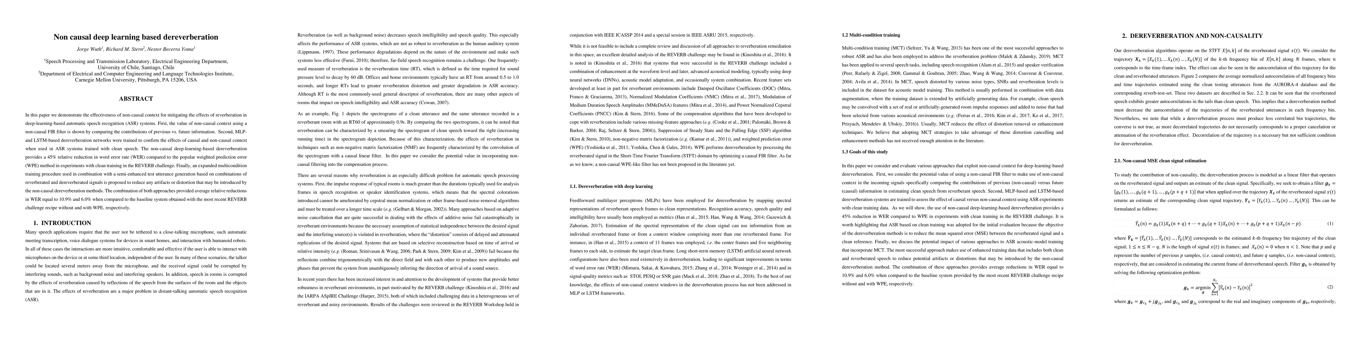 A new method for reducing reverberation in speech recognition systems using non-causal deep learning has shown a 45% relative reduction in word error rate compared to traditional methods, with potential to further improve performance through combined approaches.