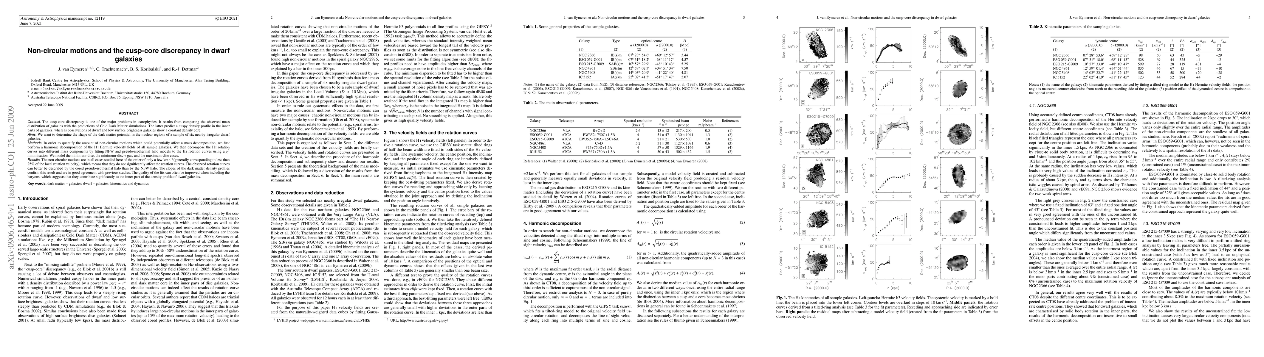 This paper investigates the cusp-core discrepancy in dwarf galaxies by analyzing non-circular motions in six nearby irregular dwarf galaxies. The study finds that non-circular motions are minor and do not significantly affect mass decomposition, with rotation curves better described by cored pseudo-isothermal halos than cuspy NFW halos, suggesting baryonic contributions to the inner density profiles.