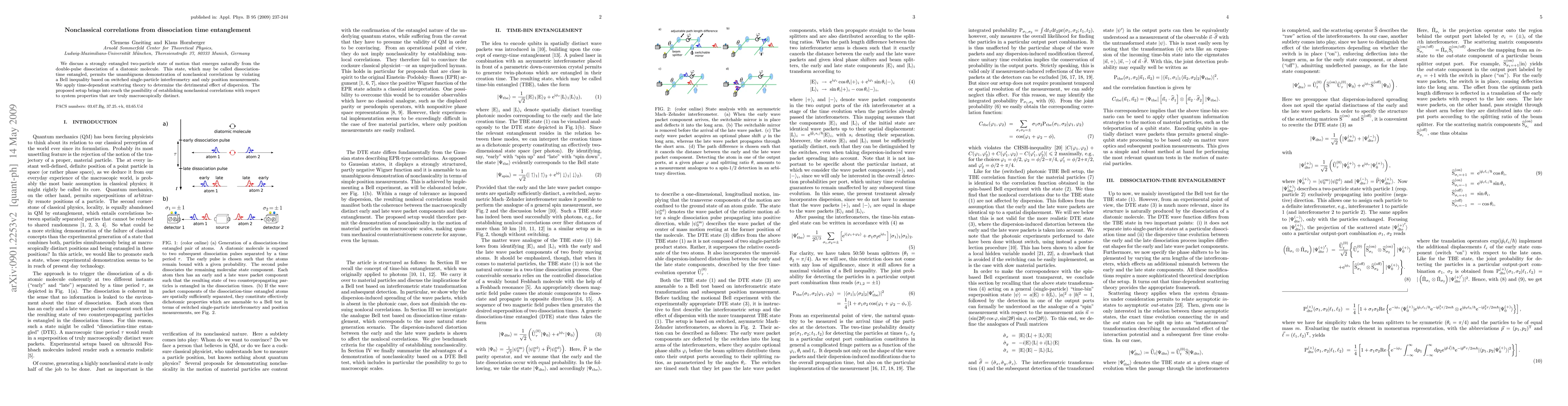 This paper explores a strongly entangled two-particle state from the dissociation of a diatomic molecule, demonstrating non-classical correlations via a Bell inequality violation using switched single-particle interferometry. The study employs time-dependent scattering theory to assess the impact of dispersion, aiming to establish macroscopically distinct non-classical correlations.
