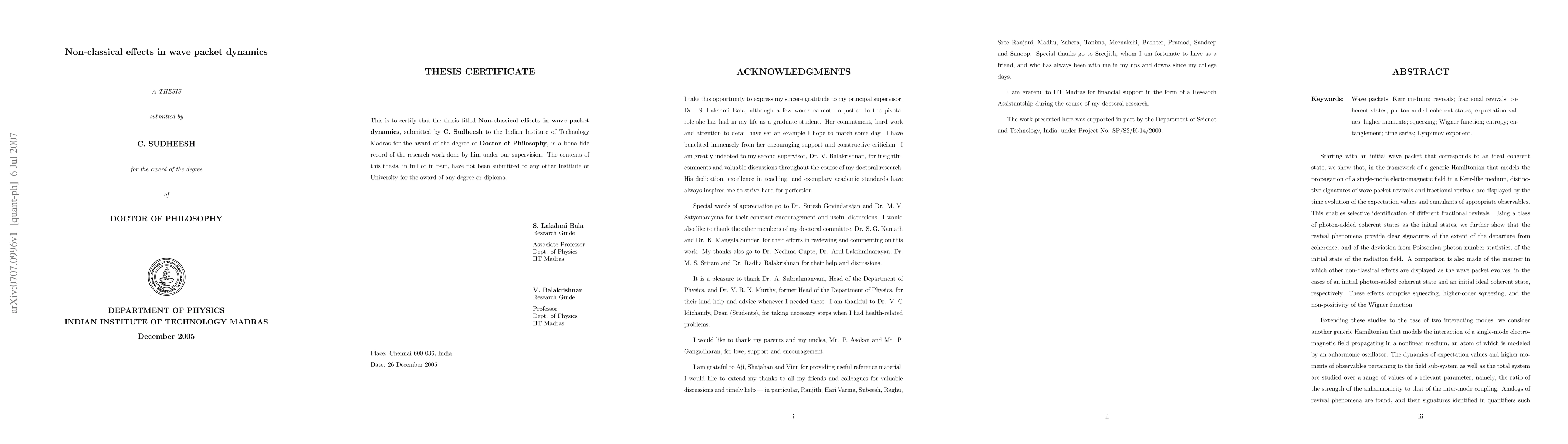 This paper investigates the non-classical effects in wave packet dynamics, focusing on phenomena like revivals, fractional revivals, and squeezing as an initial wave packet propagates through a nonlinear medium. It also explores the role of quantum entanglement in bipartite systems and examines the conditions leading to chaotic wave packet spreading.