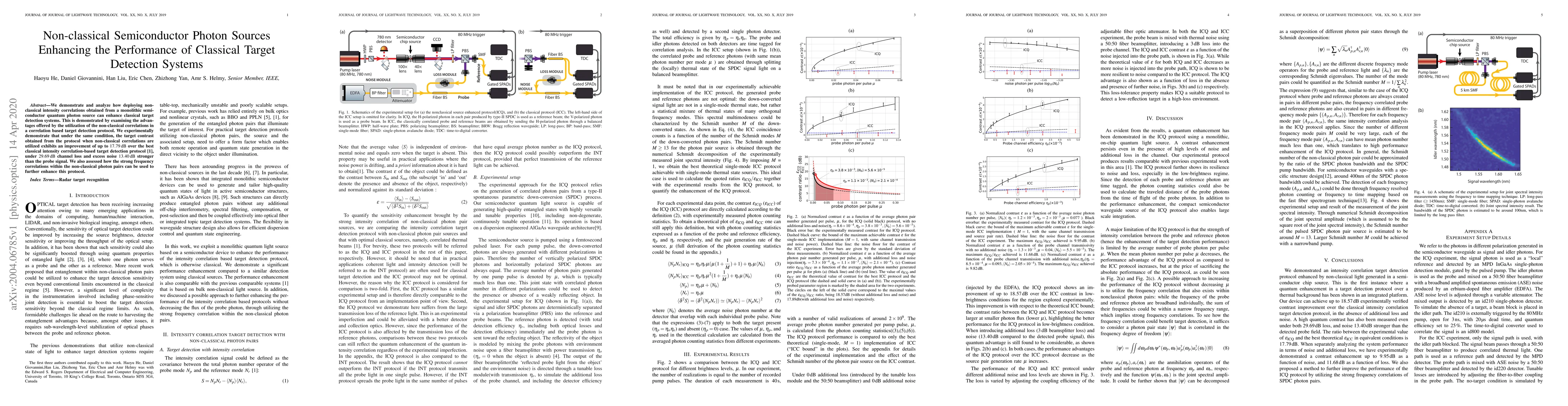 This paper demonstrates that non-classical semiconductor quantum photon sources can significantly improve classical target detection systems by leveraging non-classical intensity correlations, achieving up to 17.79dB better target contrast compared to classical methods. The study also explores the benefits of strong frequency correlations within non-classical photon pairs for further protocol enhancement.