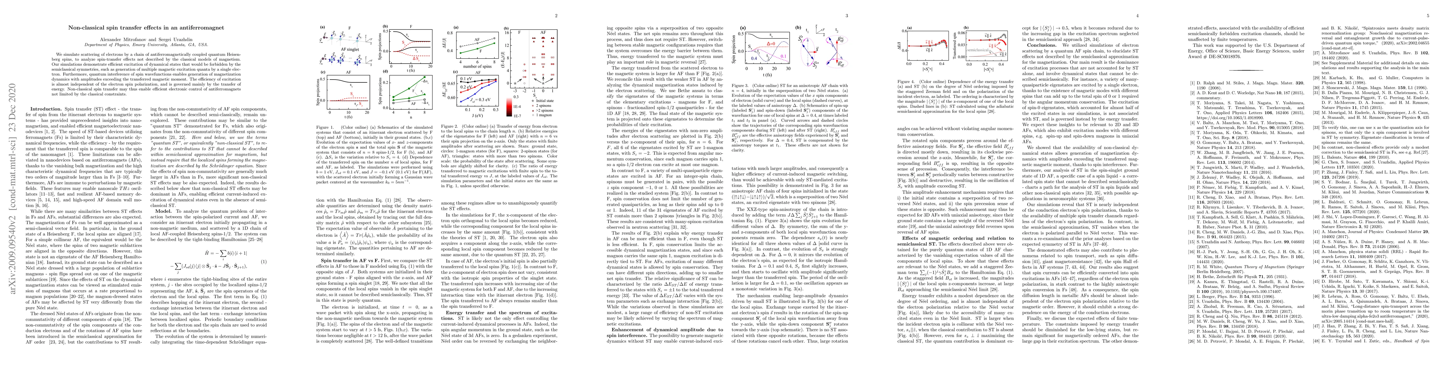 Researchers simulate electron scattering in antiferromagnets, showing non-classical spin transfer effects that can efficiently excite dynamical states and generate magnetization dynamics with high amplitudes.