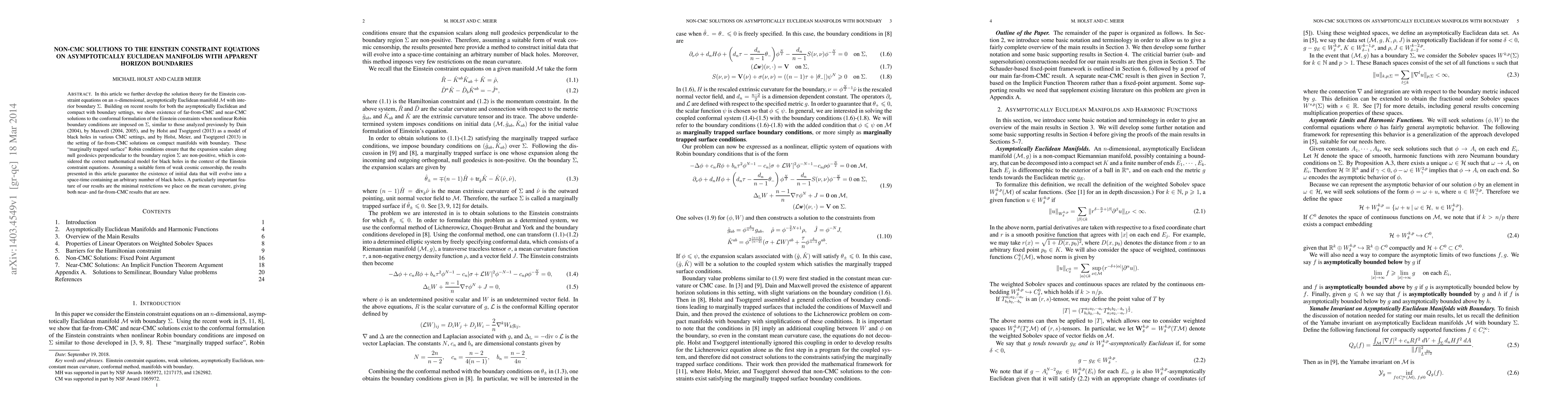 In this article we further develop the solution theory for the Einstein constraint equations on an n-dimensional, asymptotically Euclidean manifold M with interior boundary S. Building on recent results for both the asymptotically Euclidean and compact with boundary settings, we show existence of far-from-CMC and near-CMC solutions to the conformal formulation of the Einstein constraints when nonlinear Robin boundary conditions are imposed on S, similar to those analyzed previously by Dain (2004), by Maxwell (2004, 2005), and by Holst and Tsogtgerel (2013) as a model of black holes in various CMC settings, and by Holst, Meier, and Tsogtgerel (2013) in the setting of far-from-CMC solutions on compact manifolds with boundary. These "marginally trapped surface" Robin conditions ensure that the expansion scalars along null geodesics perpendicular to the boundary region S are non-positive, which is considered the correct mathematical model for black holes in the context of the Einstein constraint equations. Assuming a suitable form of weak cosmic censorship, the results presented in this article guarantee the existence of initial data that will evolve into a space-time containing an arbitrary number of black holes. A particularly important feature of our results are the minimal restrictions we place on the mean curvature, giving both near- and far-from-CMC results that are new.
