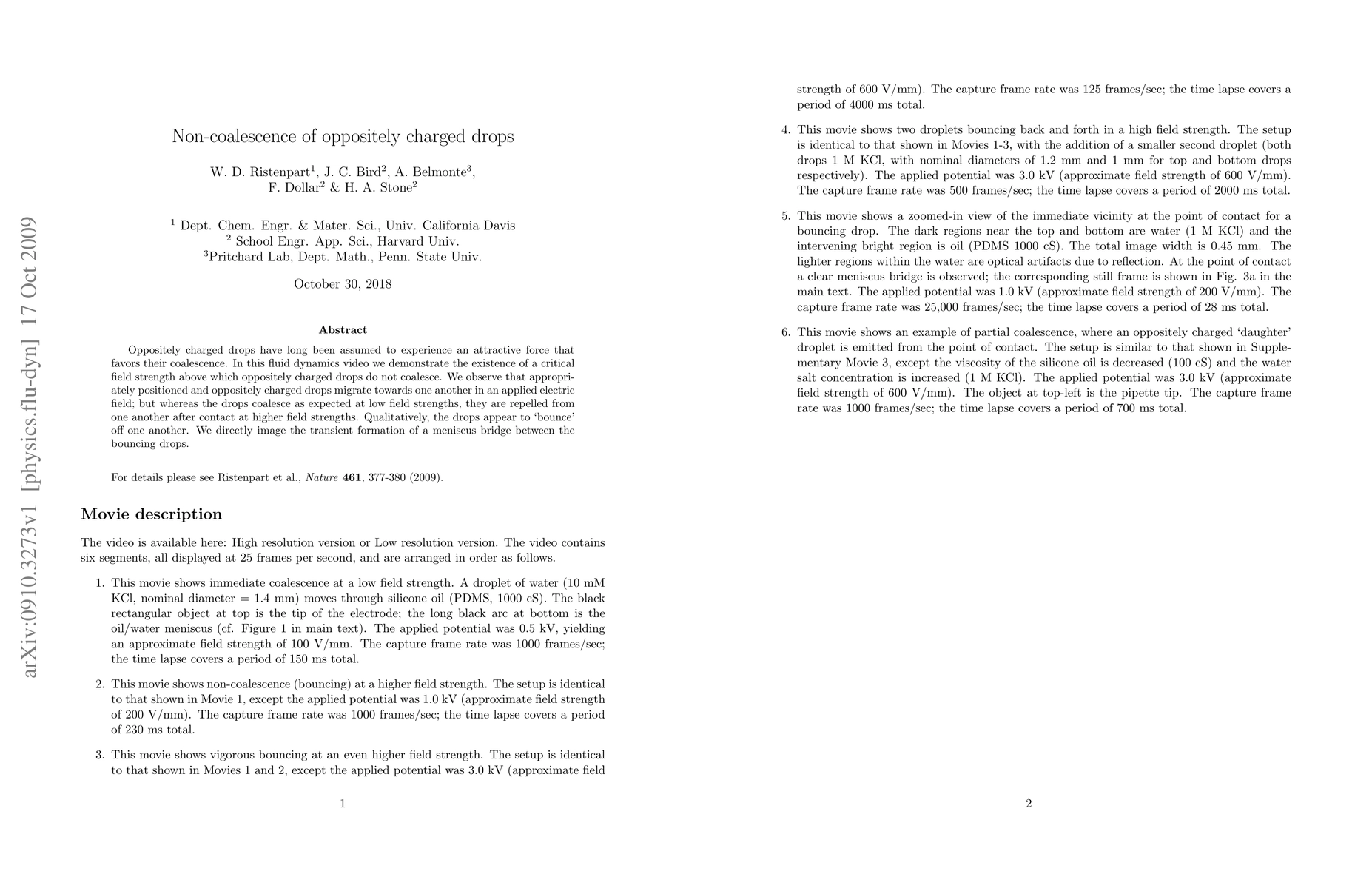 This study reveals that oppositely charged drops do not always coalesce due to an attractive force; instead, a critical electric field strength exists where they repel each other upon contact, demonstrating a phenomenon akin to "bouncing" and directly imaging the transient meniscus bridge formation.