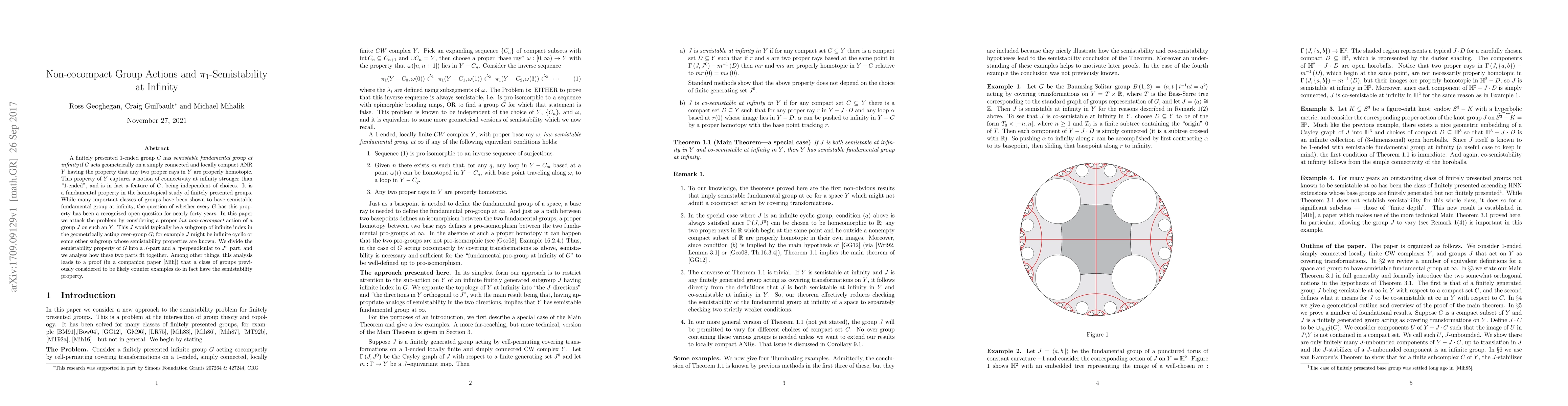A finitely presented 1-ended group $G$ has {\it semistable fundamental group at infinity} if $G$ acts geometrically on a simply connected and locally compact ANR $Y$ having the property that any two proper rays in $Y$ are properly homotopic. This property of $Y$ captures a notion of connectivity at infinity stronger than "1-ended", and is in fact a feature of $G$, being independent of choices. It is a fundamental property in the homotopical study of finitely presented groups. While many important classes of groups have been shown to have semistable fundamental group at infinity, the question of whether every $G$ has this property has been a recognized open question for nearly forty years. In this paper we attack the problem by considering a proper {\it but non-cocompact} action of a group $J$ on such an $Y$. This $J$ would typically be a subgroup of infinite index in the geometrically acting over-group $G$; for example $J$ might be infinite cyclic or some other subgroup whose semistability properties are known. We divide the semistability property of $G$ into a $J$-part and a "perpendicular to $J$" part, and we analyze how these two parts fit together. Among other things, this analysis leads to a proof (in a companion paper) that a class of groups previously considered to be likely counter examples do in fact have the semistability property.