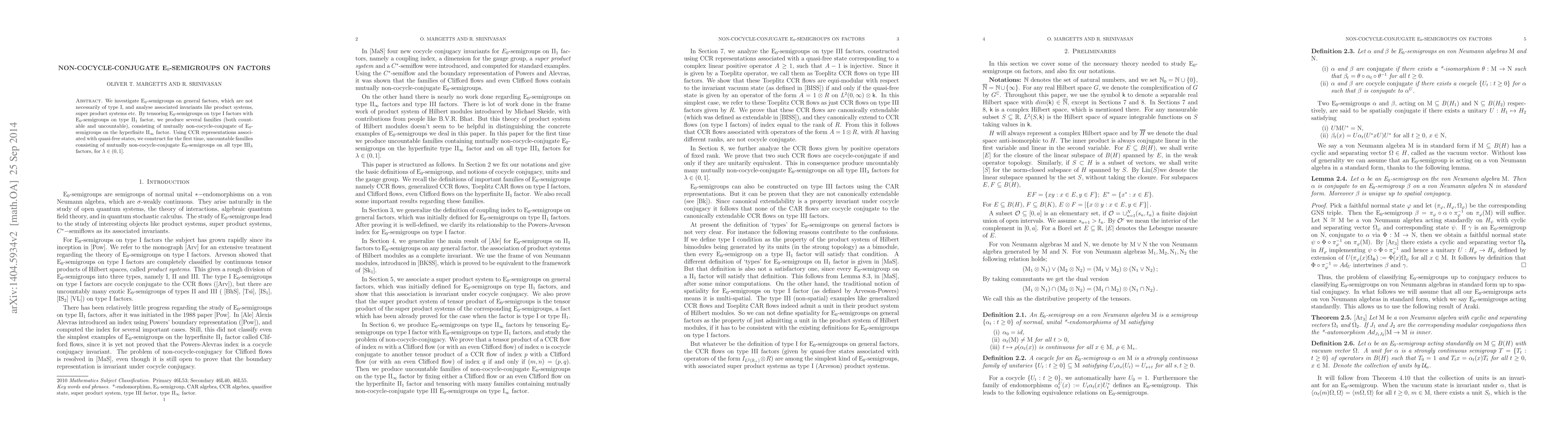 This paper explores $E_0$-semigroups on general factors beyond type I, focusing on invariants like product systems. It constructs numerous non-cocycle-conjugate $E_0$-semigroups on hyperfinite II$_\infty$ and type III$_\lambda$ factors ($\lambda \in (0,1]$) by tensoring with type II$_1$ factors and using CCR representations associated with quasi-free states.
