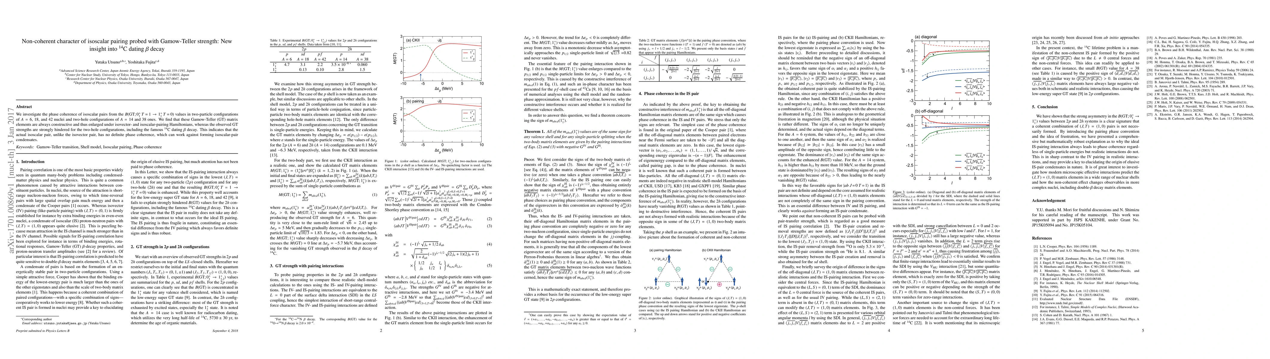 We investigate the phase coherence of isoscalar pairs from the $B({\rm GT};0^+_1\,T\!=\!1 \to 1^+_1\,T\!=\!0)$ values in two-particle configurations of $A=6$, 18, and 42 nuclei and two-hole configurations of $A=14$ and 38 ones. We find that these Gamow-Teller (GT) matrix elements are always constructive and thus enlarged under isovector- and isoscalar-pairing Hamiltonians, whereas the observed GT strengths are strongly hindered for the two-hole configurations, including the famous $^{14}$C dating $\beta$ decay. This indicates that the actual isoscalar pair, unlike the isovector pair, has no definite phase coherence, which can work against forming isoscalar-pair condensates.