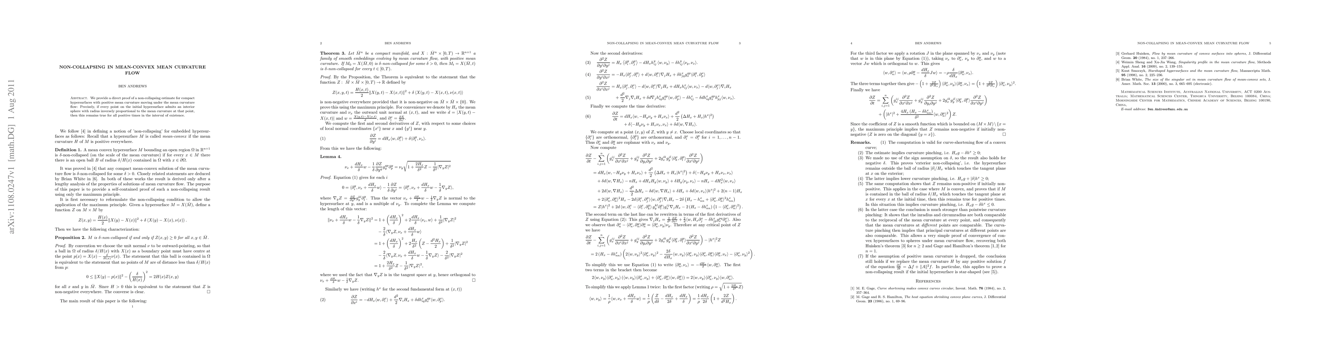 Researchers prove that a specific type of hypersurface moving under mean curvature flow maintains its non-collapsing property if an interior sphere can fit at each point, maintaining its radius inversely proportional to the mean curvature.