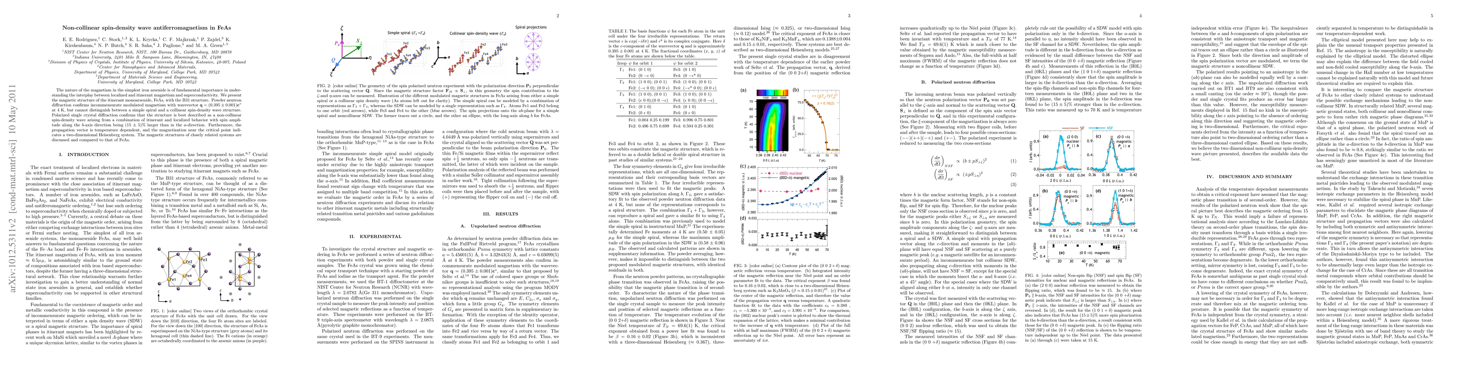 Researchers investigated FeAs, discovering non-collinear spin-density wave antiferromagnetism with a temperature-dependent propagation vector, revealing the interplay between localized and itinerant magnetism.
