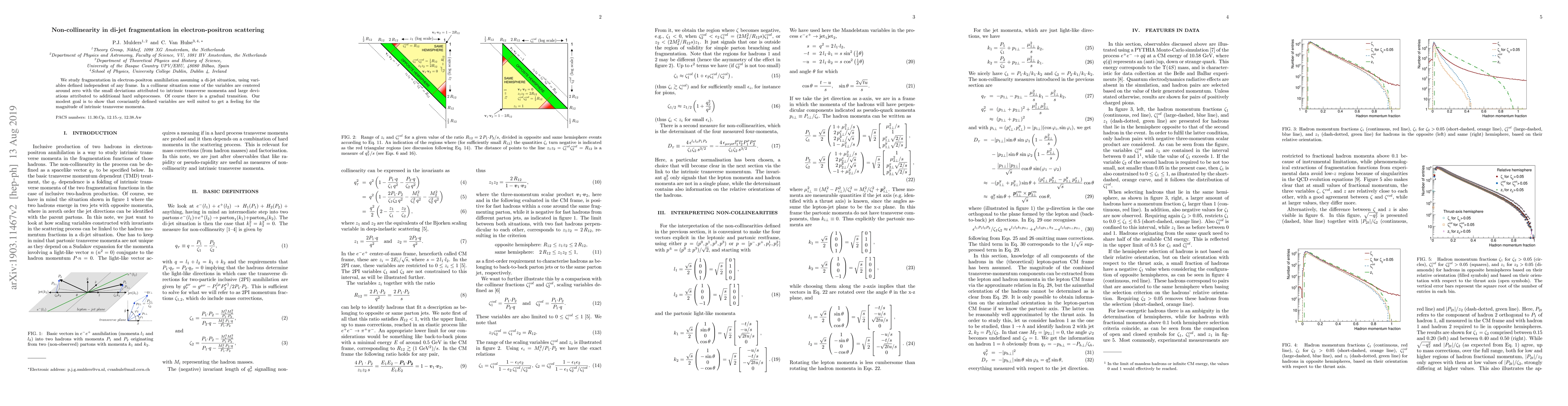 We study fragmentation in electron-positron annihilation assuming a di-jet situation, using variables defined independent of any frame. In a collinear situation some of the variables are centered around zero with the small deviations attributed to intrinsic transverse momenta and large deviations attributed to additional hard subprocesses. Of course there is a gradual transition. Our modest goal is to show that covariantly defined variables are well suited to get a feeling for the magnitude of intrinsic transverse momenta.