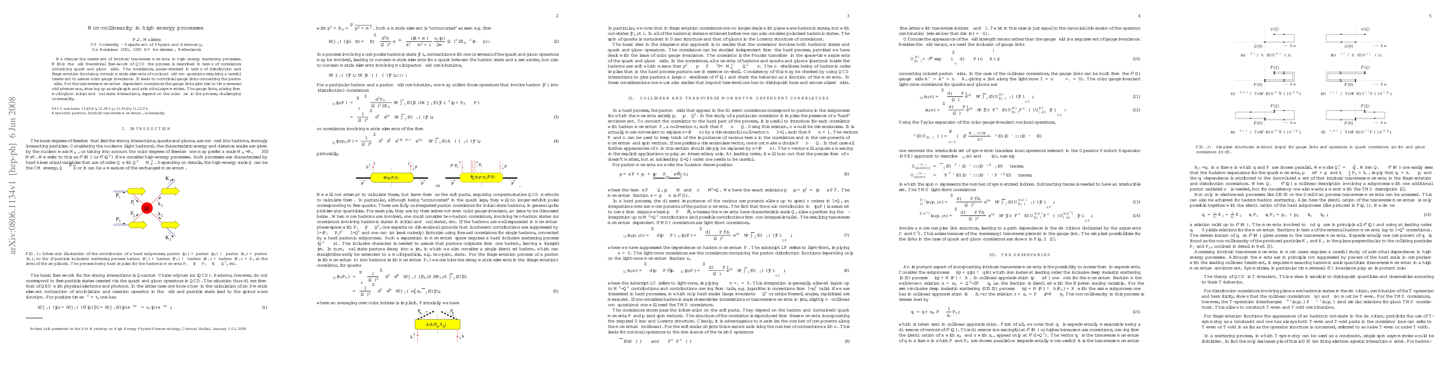 High-energy scattering processes show non-collinearity due to gauge links that depend on color flow and lead to time reversal odd phenomena, challenging universality. This affects single spin and azimuthal asymmetries in transverse momentum dependent correlators.